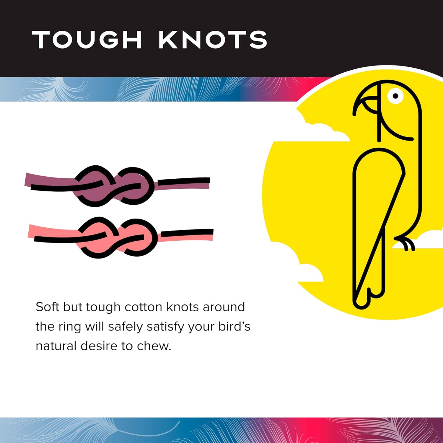 - TOUGH KNOTS: Soft but tough cotton knots around the ring will safely satisfy your birdβs natural desire to chew