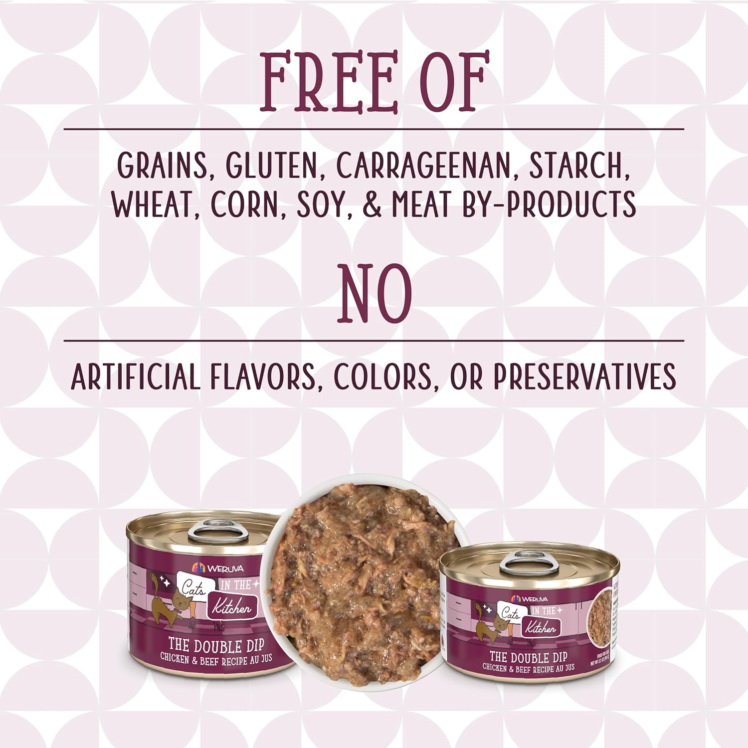 - The Double Dip (6oz cans, pack of 24) Featuring cage-free shredded chicken and grass fed beef in a delicious Au Jus. An all natural blend of premium proteins that cat’s can't resist!