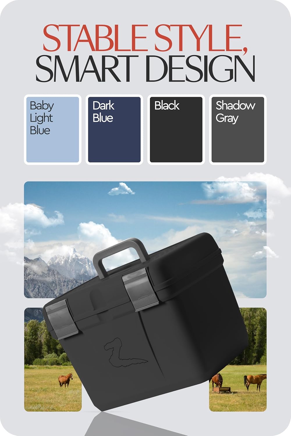 - More Than Just a Grooming Box: This grooming tote box doubles as a step for when you need one. Thanks to a non-slip surface on the lid you can safely use the box as a step to help groom your horse.