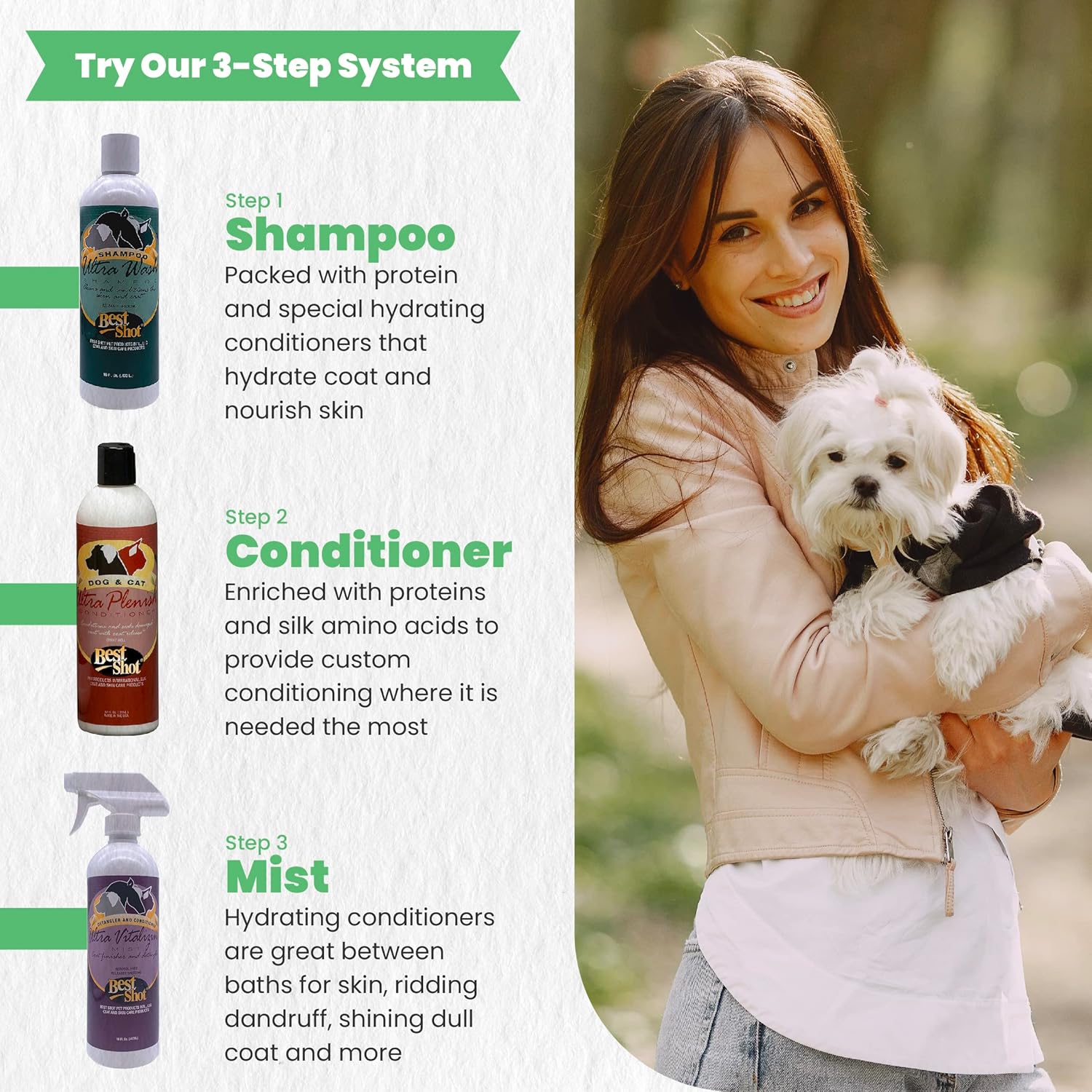 - Hypoallergenic: Alcohol-free and hypoallergenic, Best Shotβs Ultra-Vitalizing Mist detangling conditioner can be used for reducing malodor between baths, for routine brush-ups, or before drying to release more undercoat. Available in a 16 oz bottle