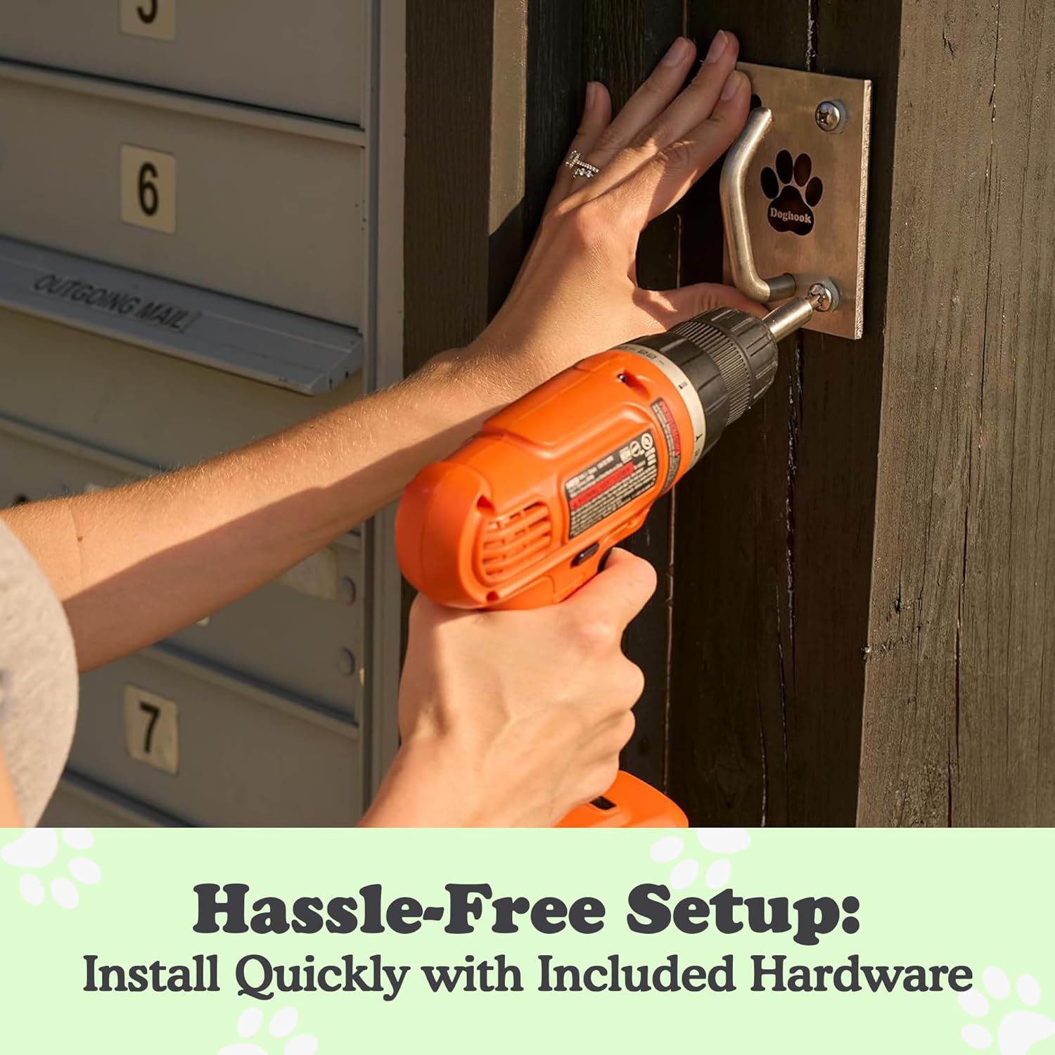 - Hassle-Free Setup - Install your new dog hook in a snap with the included hardware. This pet leash hook comes with everything you need for a quick and easy setup, so you can start using it right away. Say goodbye to complicated installations.