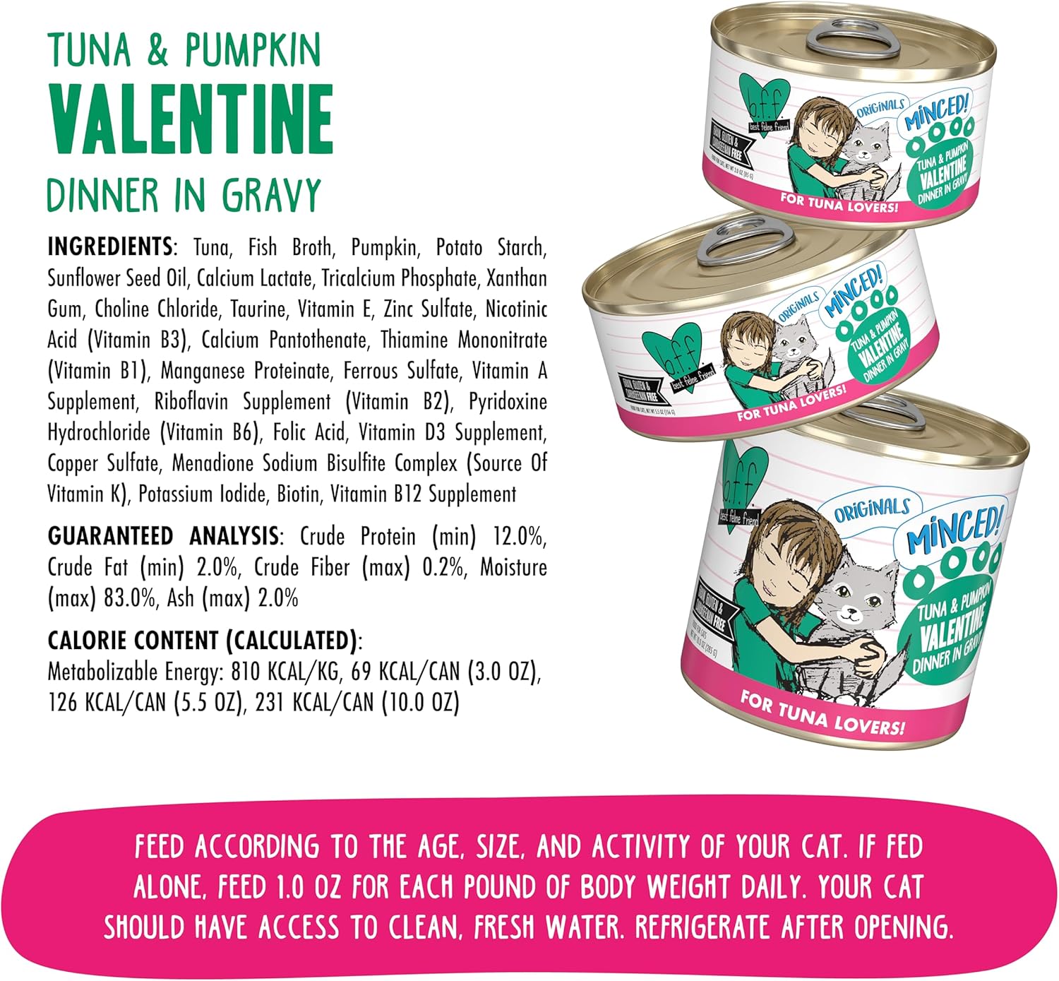 - Tuna and Pumpkin Valentine with wild caught skipjack tuna and pumpkin minced to perfection in a delicious gravy, 5.5oz Can, Pack of 24