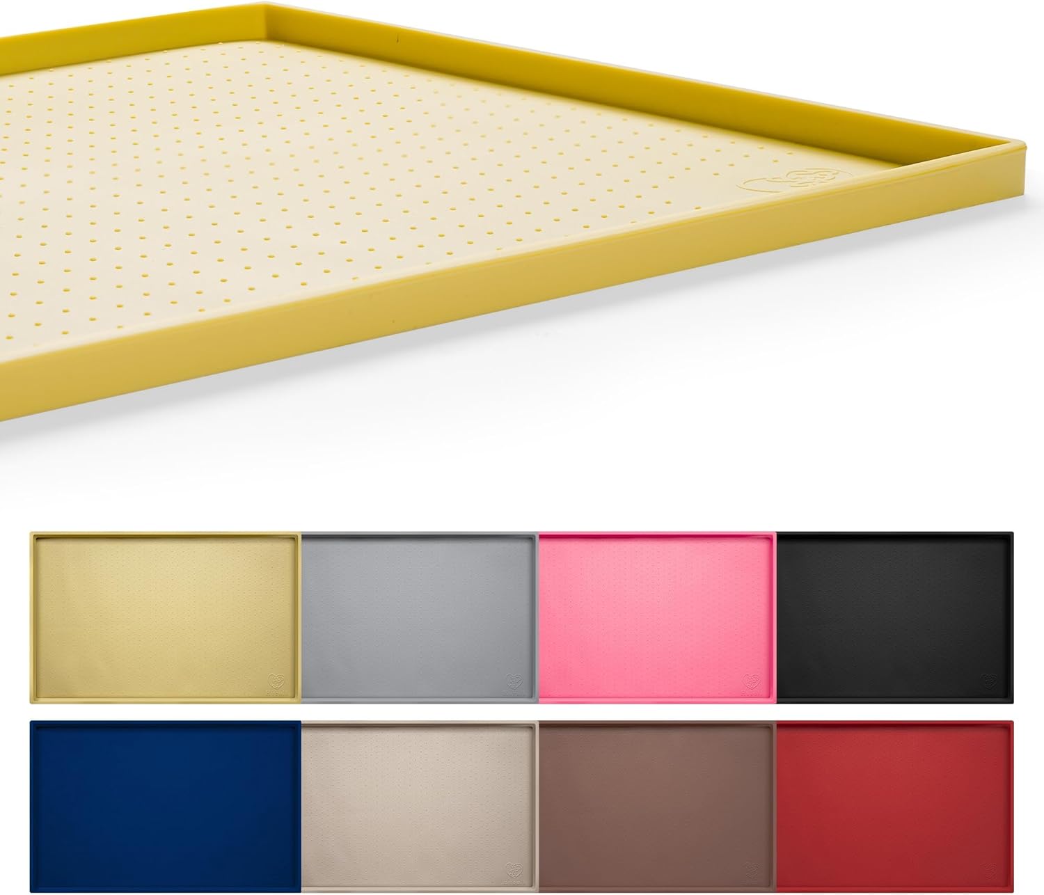 - EXTRA-TALL LIP PREVENTS SPILLS: Super high outer lip (0.5” raised edge) keeps all the mess contained on the doggie placemat and away from your floor. Anti skid surface prevents dog bowls from moving. Use this cute waterproof mat under pet food bowls for dogs, water dishes, pet fountains, automatic feeders, feeding stations to protect your floors.