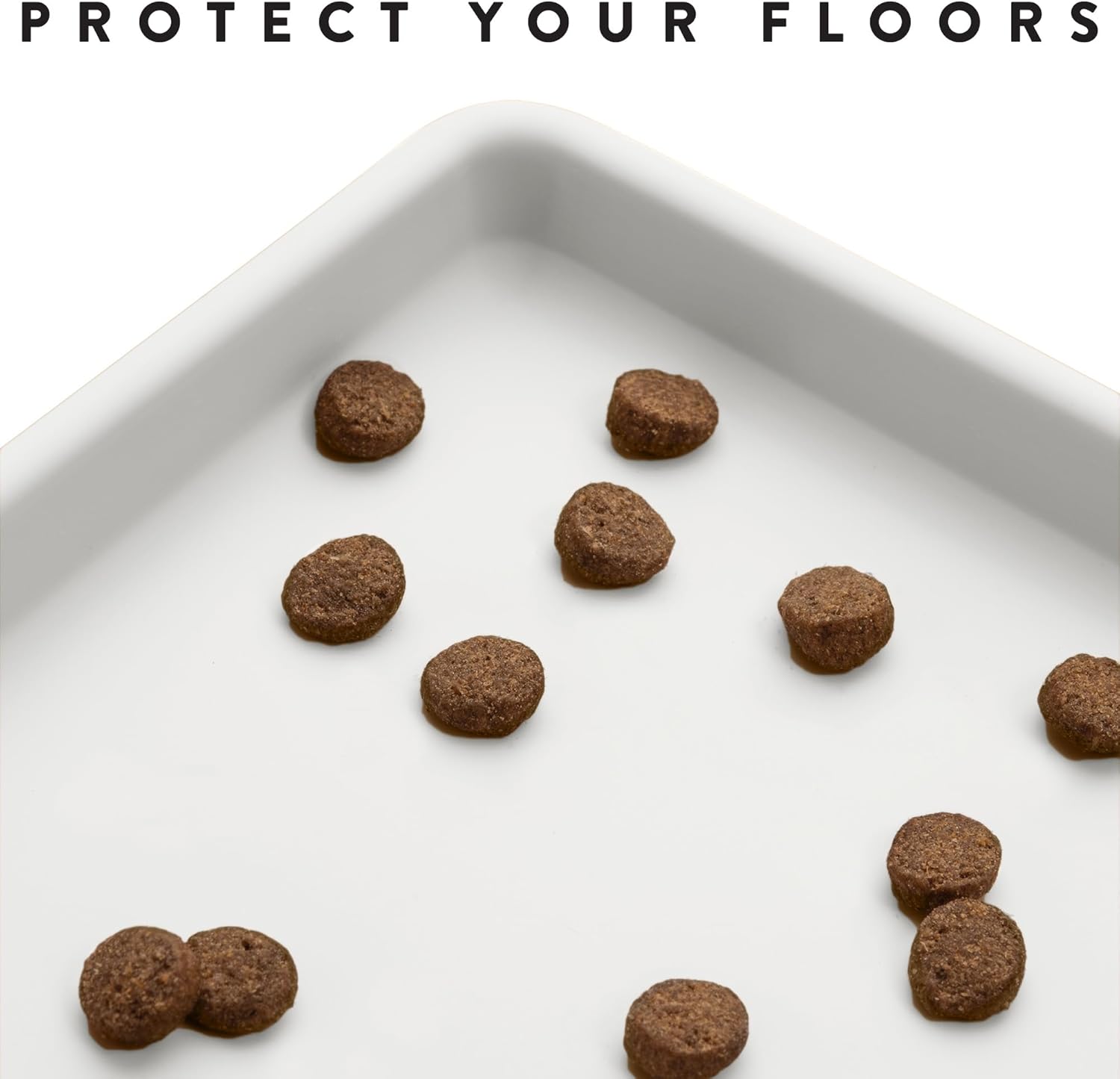 - ⭐️ EXTRA HIGH EDGE: CatGuru Cat Food Mat is the only cat food mat on the market that can hold up to 5 cups of spilled food and water due to the raised outer edges. This heavy duty pet food mat is specially designed for messy eaters. Use this cat mat under cat bowls, cat water fountain or cat feeder to protect your floors.
