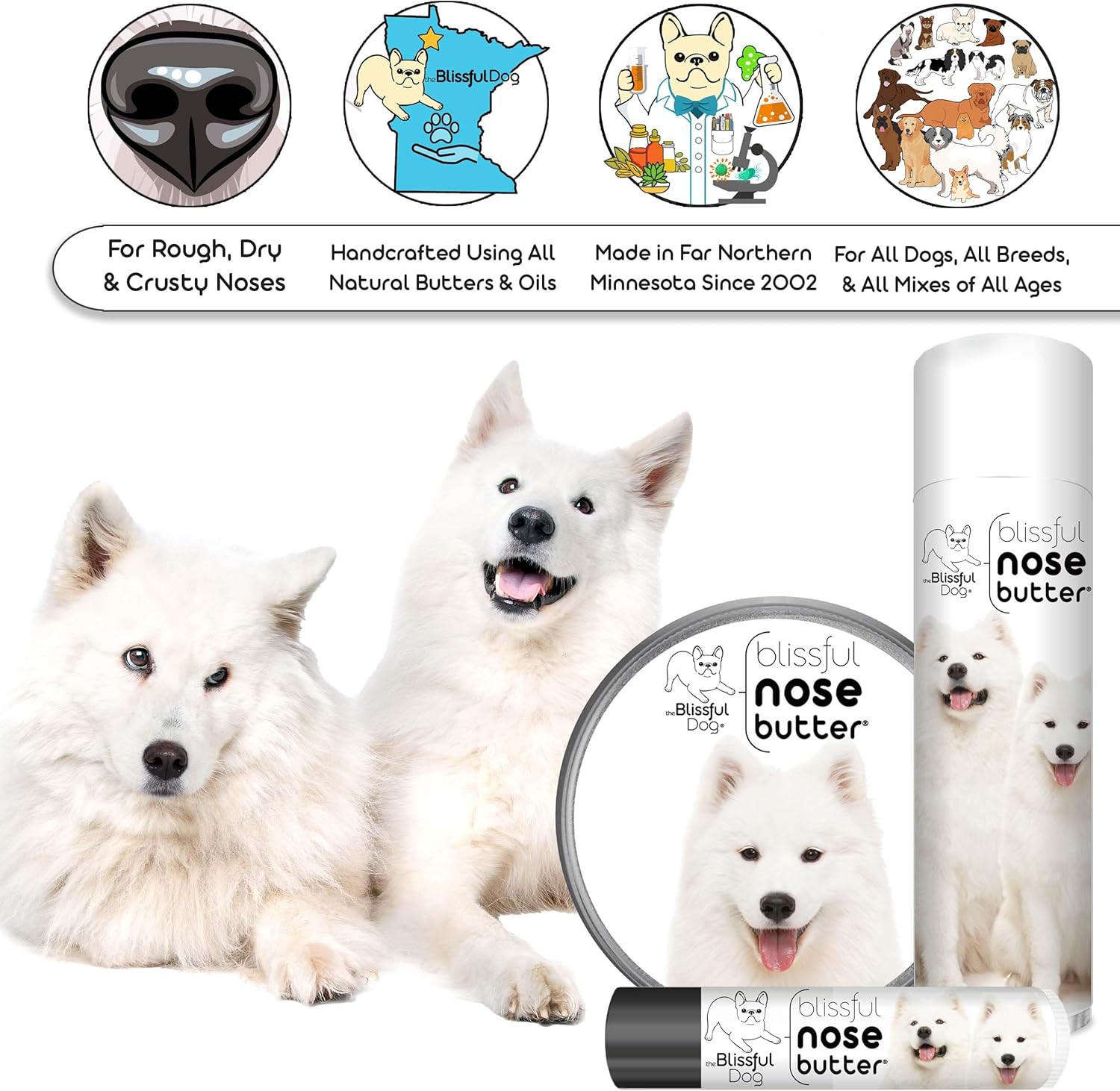 The Blissful Dog Samoyed Unscented Nose Butter - Dog Nose Butter, 4 Ounce