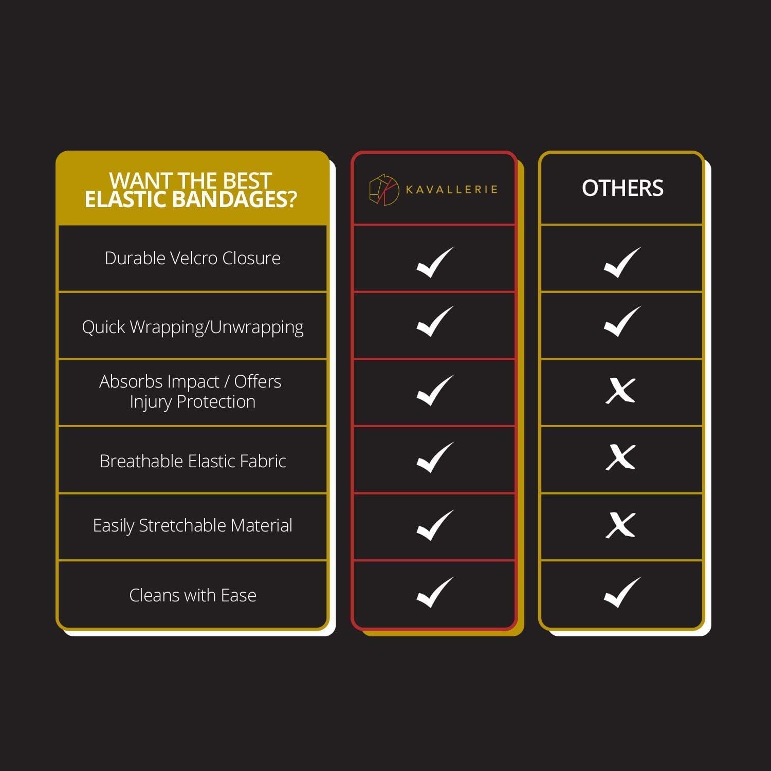 - IMPACT-ABSORBING & INJURY PROTECTION - Kavallerie Elastic Bandages is an ultimate leg support during high-level performances such as exercises and competitions. It protects the sensitive horse tendons and ligaments from cuts, abrasions, and minor swelling. With sufficient elasticity, it makes sure that the legs are protected during turnouts.