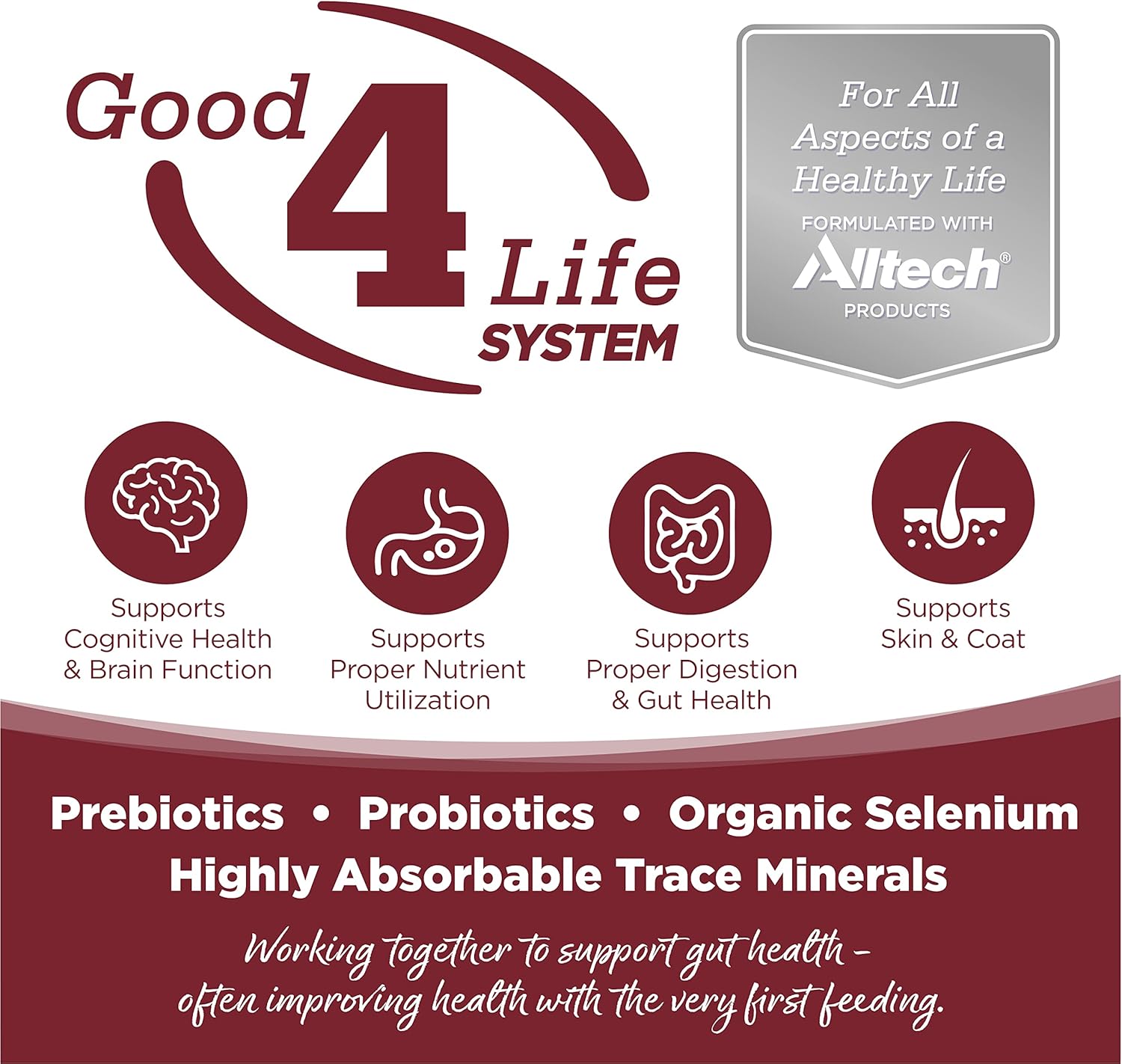 - Our proprietary Good 4 Life system includes 4 key ingredients that work together to support gut health and the overall well-being of your pet