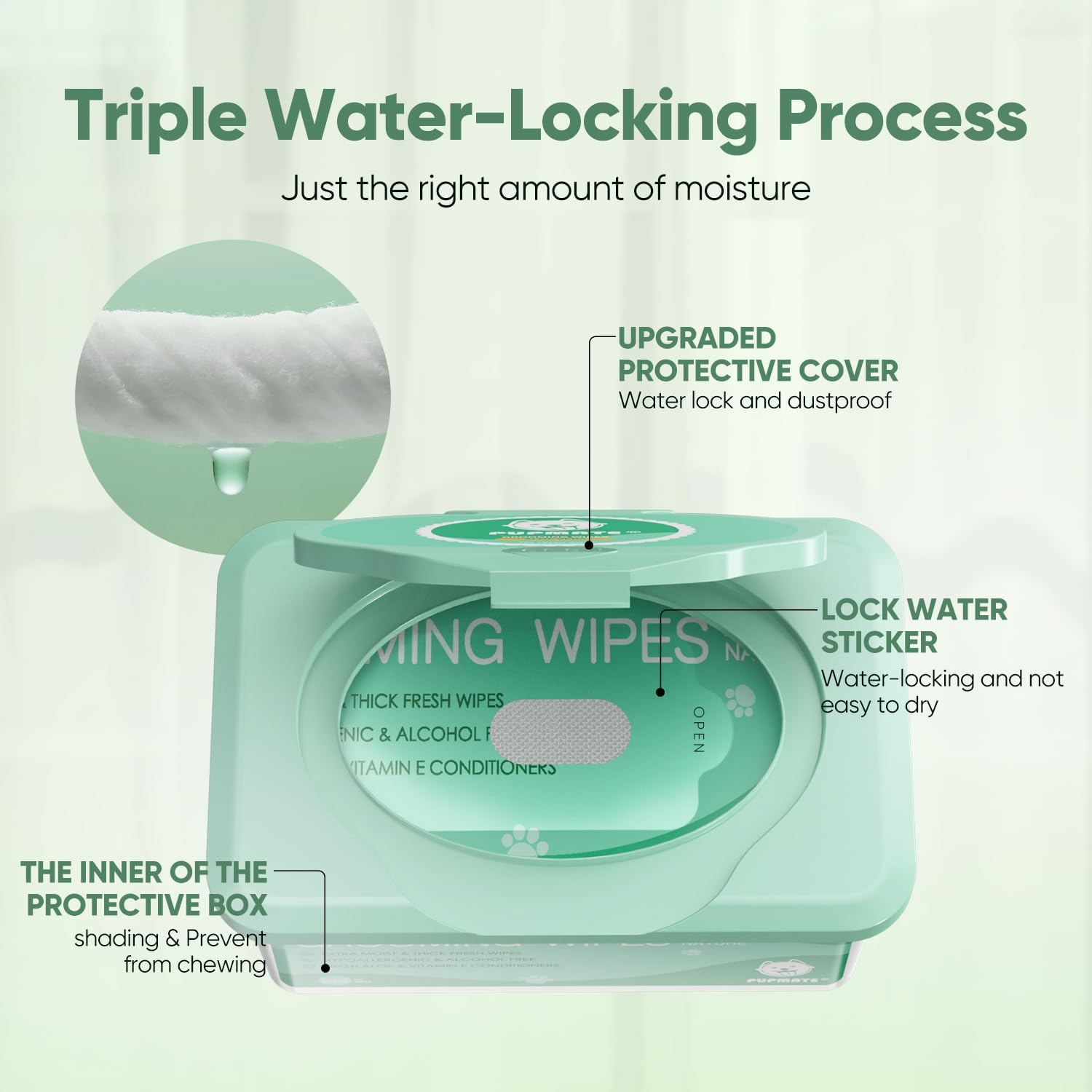 - CONVENIENT STORAGE AND DISTINCTIVE BOX DESIGN: The PUPMATE experience is about convenience, and our pet wipes exemplify this principle. Encased in a moisture-sealed box that shields them from dust and light, they're primed for use at a moment's notice. Be it your adventures outdoors or cozy moments at home, our dog wet wipes take on the role of unwavering protectors, an indispensable resource for your pet's joy