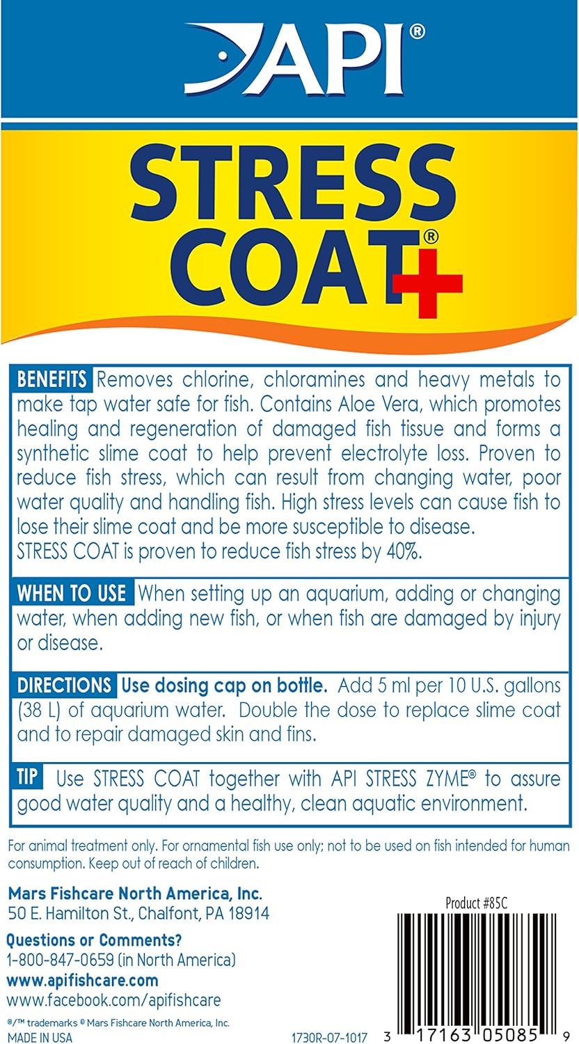 - API STRESS COAT makes tap water safe and protects fish with dual-action formula