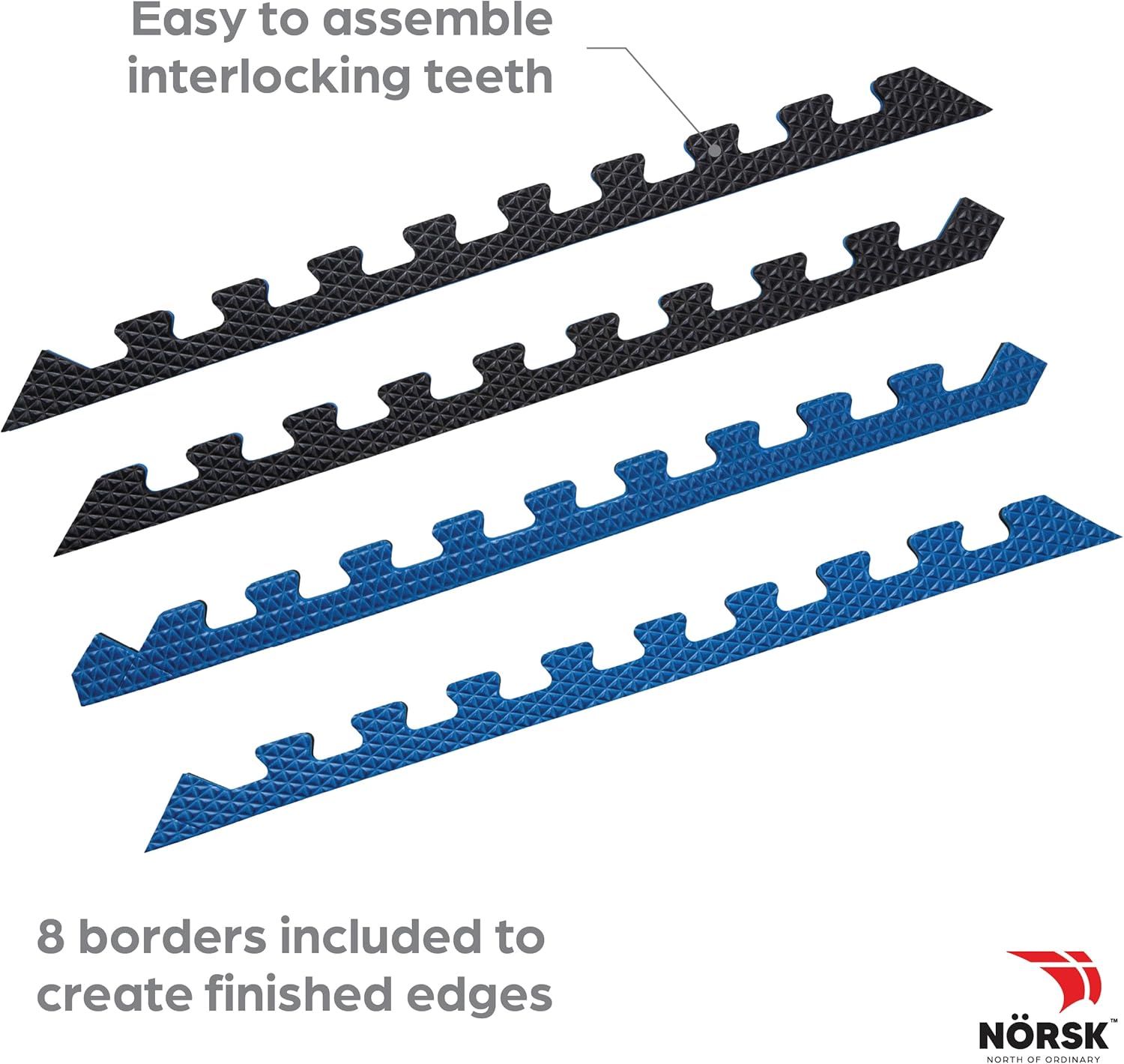 Norsk Reversible Gym Exercise Mats 3/4" Thick EVA Interlocking Foam Tiles, Perfect Gym Flooring for Home Gym,12 Tiles & 24 Trim Pieces, 48 Sq. Ft. Reversible, Dazzling Blue/Black