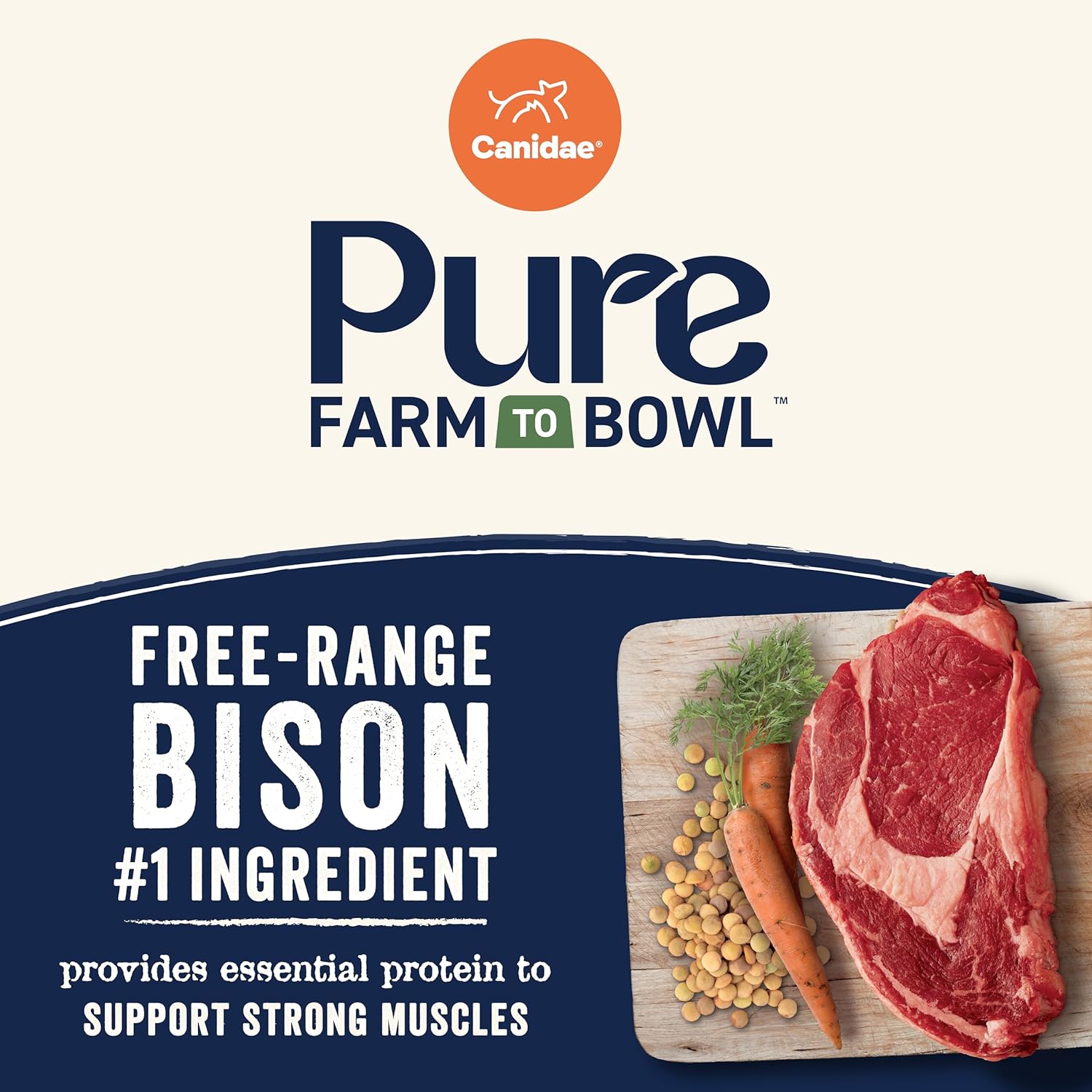 Canidae Pure Farm to Bowl Free-Range Bison, Lentil & Carrot, Adult, Grain-Free Dry Dog Food, 21lb