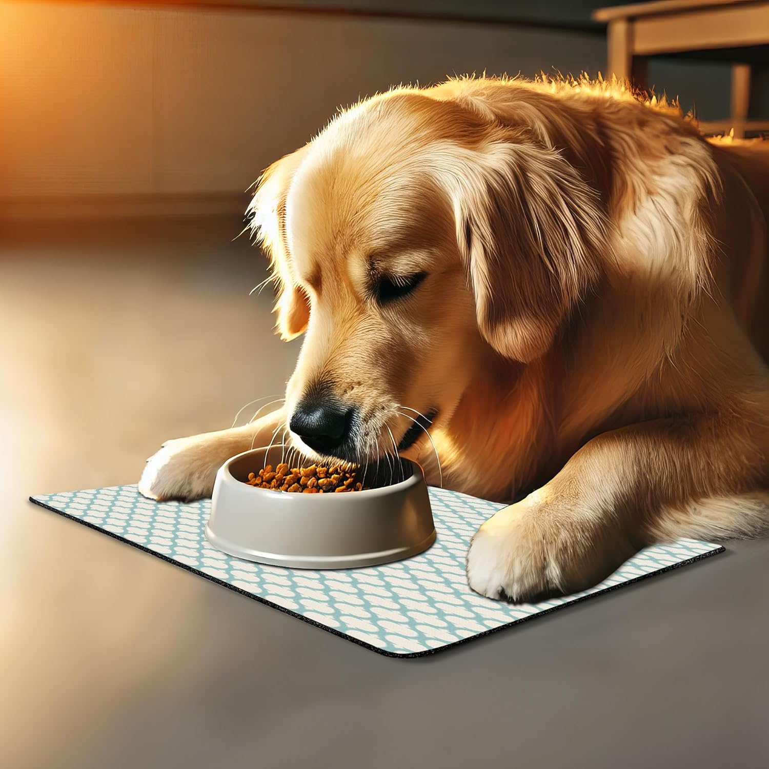 - Features - Fun prints and long-lasting colors. Find any theme and color you want to match your room decor or your pet’s personality. This pet feeding mat can even feature your cat's or dog’s favorite item or design, adding a cheerful touch to your pet’s feeding area.