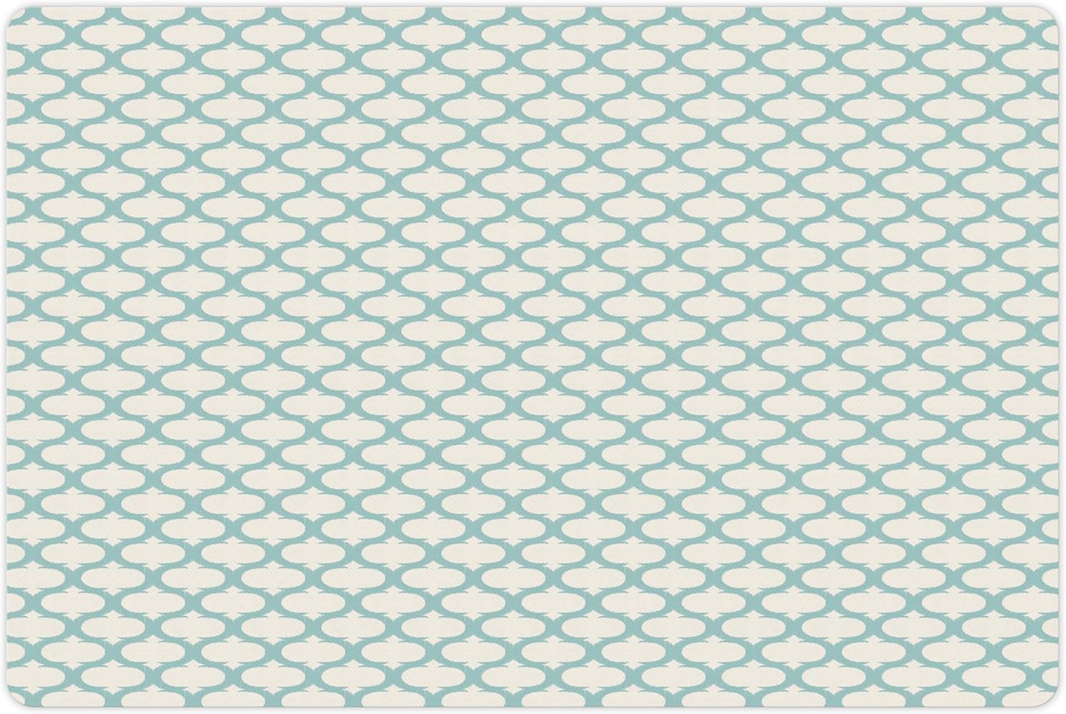 Lunarable Ikat Pet Mat for Food and Water, Mesh Patterns and Lines on Vintage Backdrop Retro Ikat Style Boho Print, Non-Slip Rubber Mat for Dogs and Cats, 18" X 12", Turquoise Cream