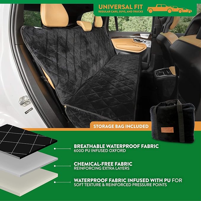 - πππ₯ π¦πππ§ π¦πππππ: Our expertly engineered, heavy-duty Diamond Stitched Rear seat cover protects the passenger seat of most cars, SUVs, & trucks, shielding your interior from dirty paws, sharp claws, and accidental spills. Our Seat covers are made from durable Velvet fabric, our pet seat covers are breathable, non-porous, and waterproof.