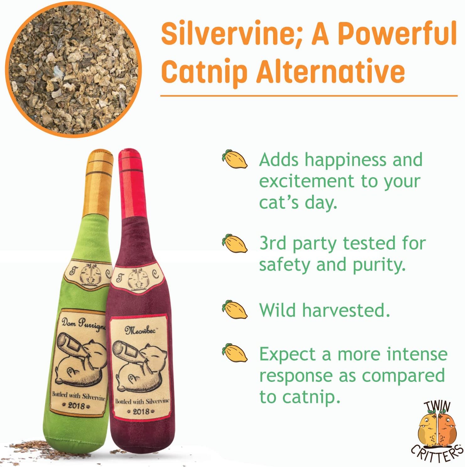 KittiLush 2-Pack Organic Silvervine Catnip Substitute Toys for Cats & Kittens | 100% All-Natural Wild Harvested Silvervine | 2 Refillable Wine Bottle Kicker Cat Toys