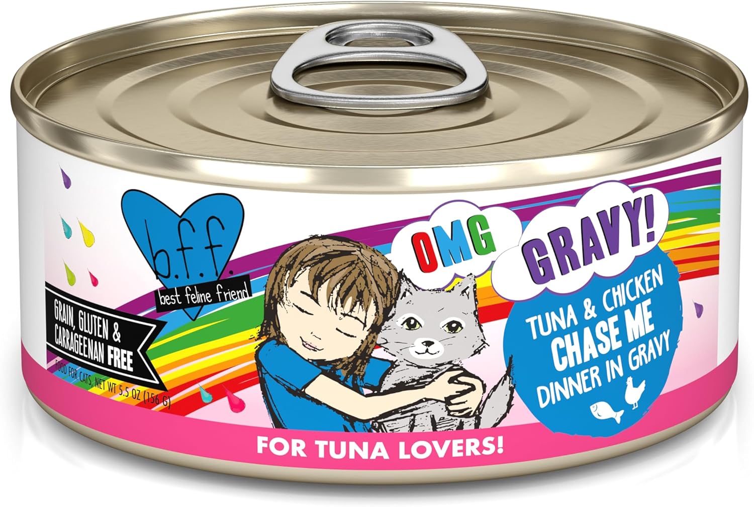 Weruva B.F.F. OMG - Best Feline Friend Oh My Gravy!, Tuna & Chicken Chase Me with Tuna & Chicken, 5.5oz Can (Pack of 8)