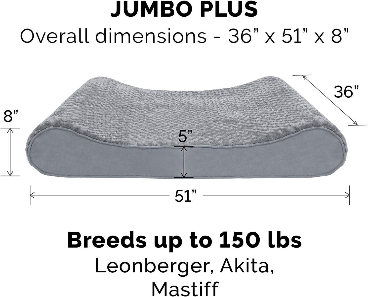 - PRODUCT DETAILS: Gray; Jumbo Plus, 36" x 51" x 8" (5" Center; 8" Edges)