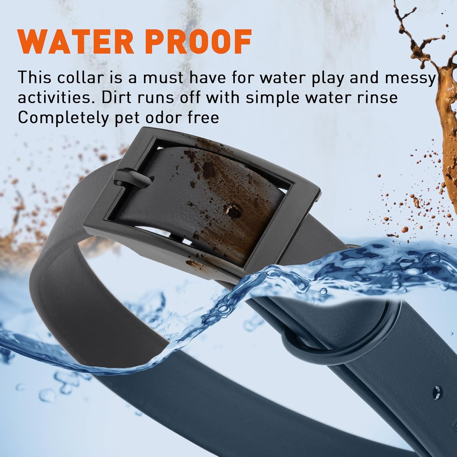• Free Your Dog to romp in puddles and retrieve from lakes with the Dogline Biothane Waterproof Dog Collar. This water-repellent collar stays dry and odor-free, without shrinking or losing flexibility.