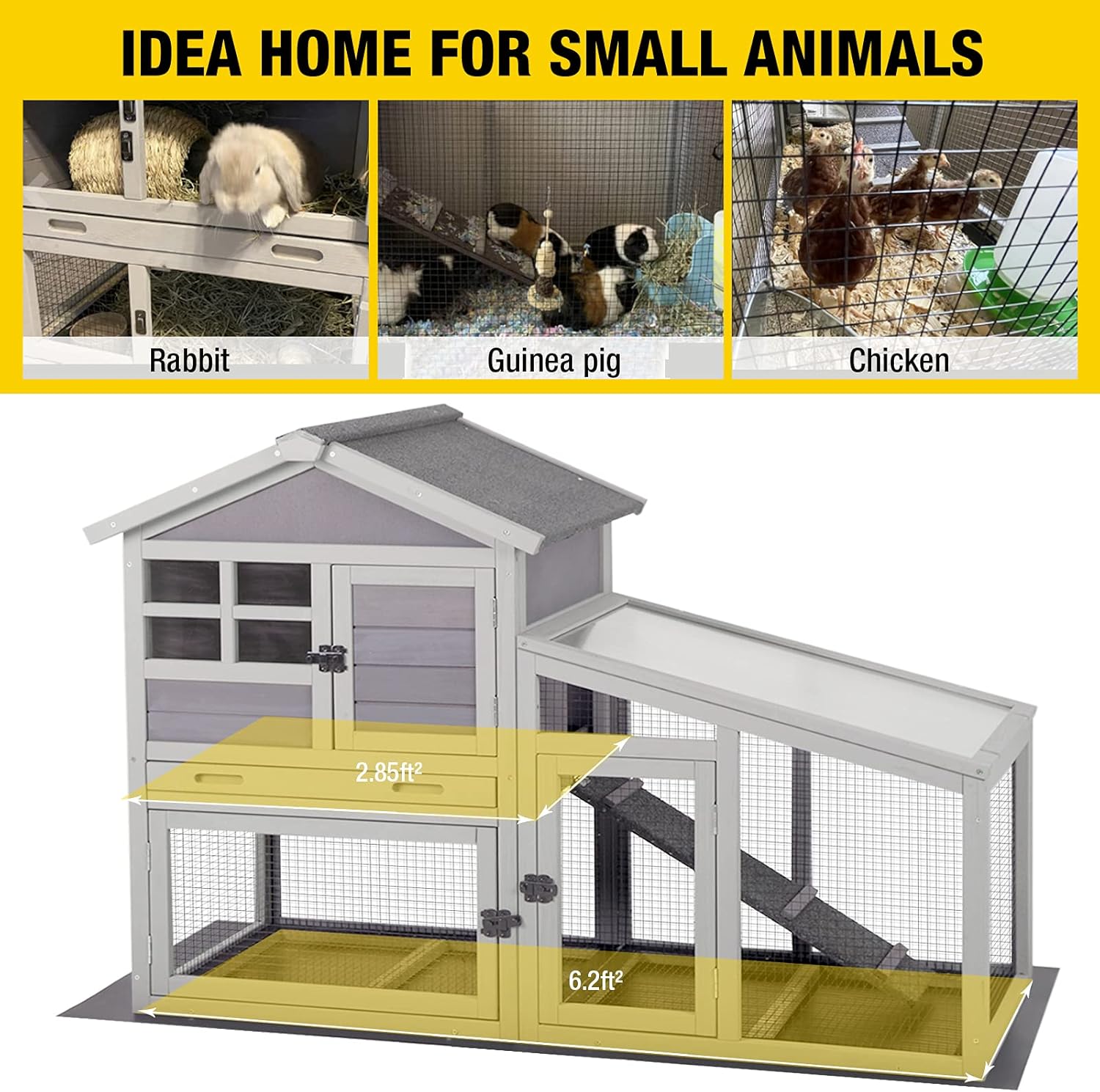 - 【 COST-EFFECTIVE】Bunny hutch perfect for 2-3 bunnys,chickens and other small animals,no weight limit.Improved latches create perfect alignment and greater security.