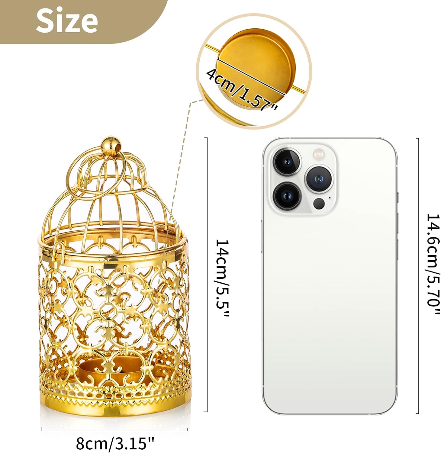 - DIMENSIONS: Approx.5.5 inch(14cm) height, 3.15 inch(8cm) diameter, It could hold tealight diameter up to 1.5 inch, LED candles also suitable.