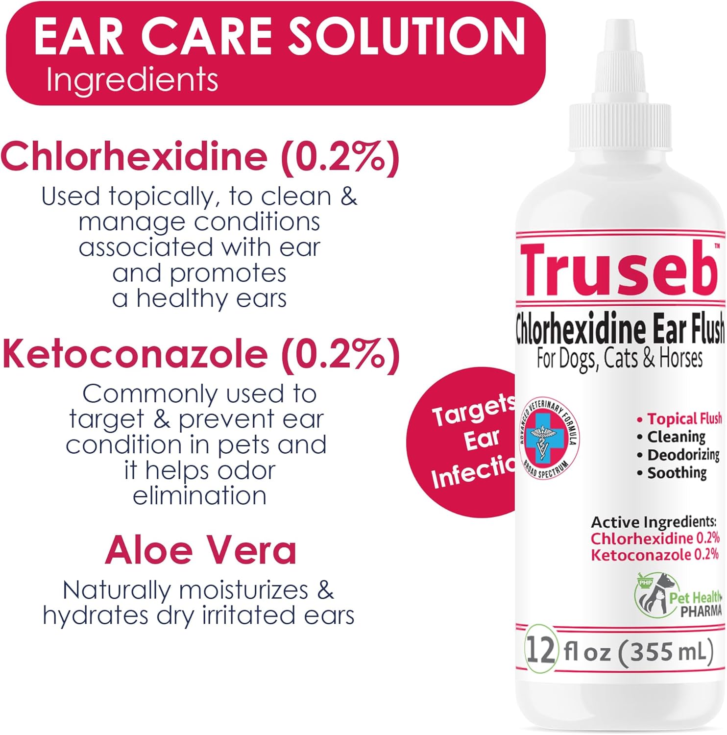 All Natural Ear Flush for Dogs & Cats, Ketoconazole & Chlorhexidine Ear and Vet-Strength Ear wash with a Light Scent (USA) (Ketoconazole & Chlorhexidine Ear Flush, 12 oz)