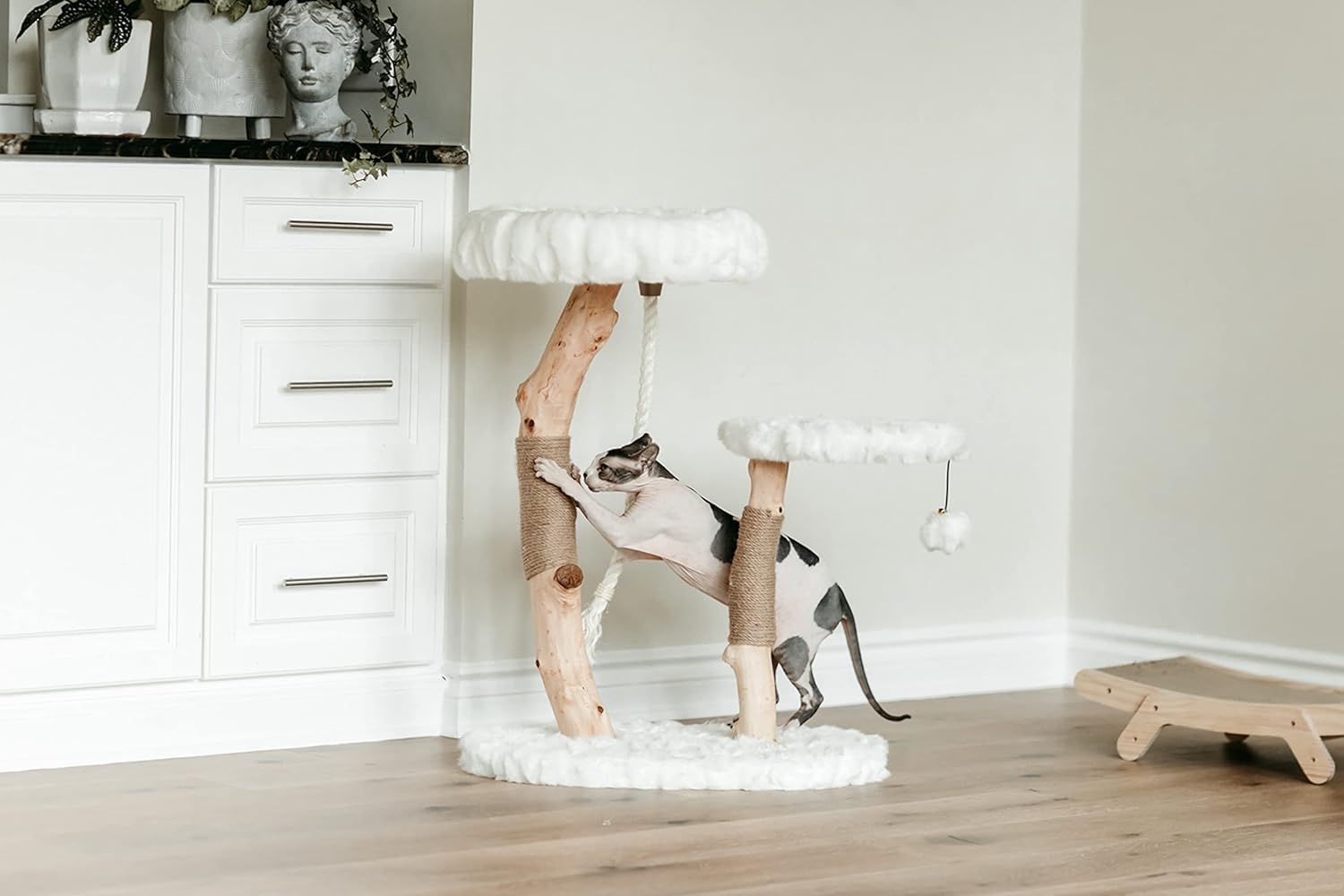 Mau Lifestyle Luxury Cat Tree: Modern Cat Condo & Luxury Wood Cat Tower; Natural Branch Scratching Tree & Cat Condo; Cat Gifts by Mau