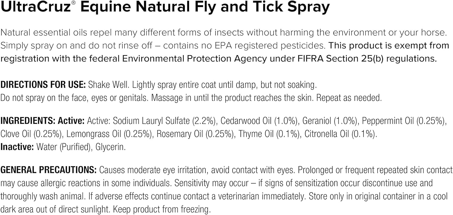 - Equine insect repellent to deter flies, ticks, mosquitoes and gnats
