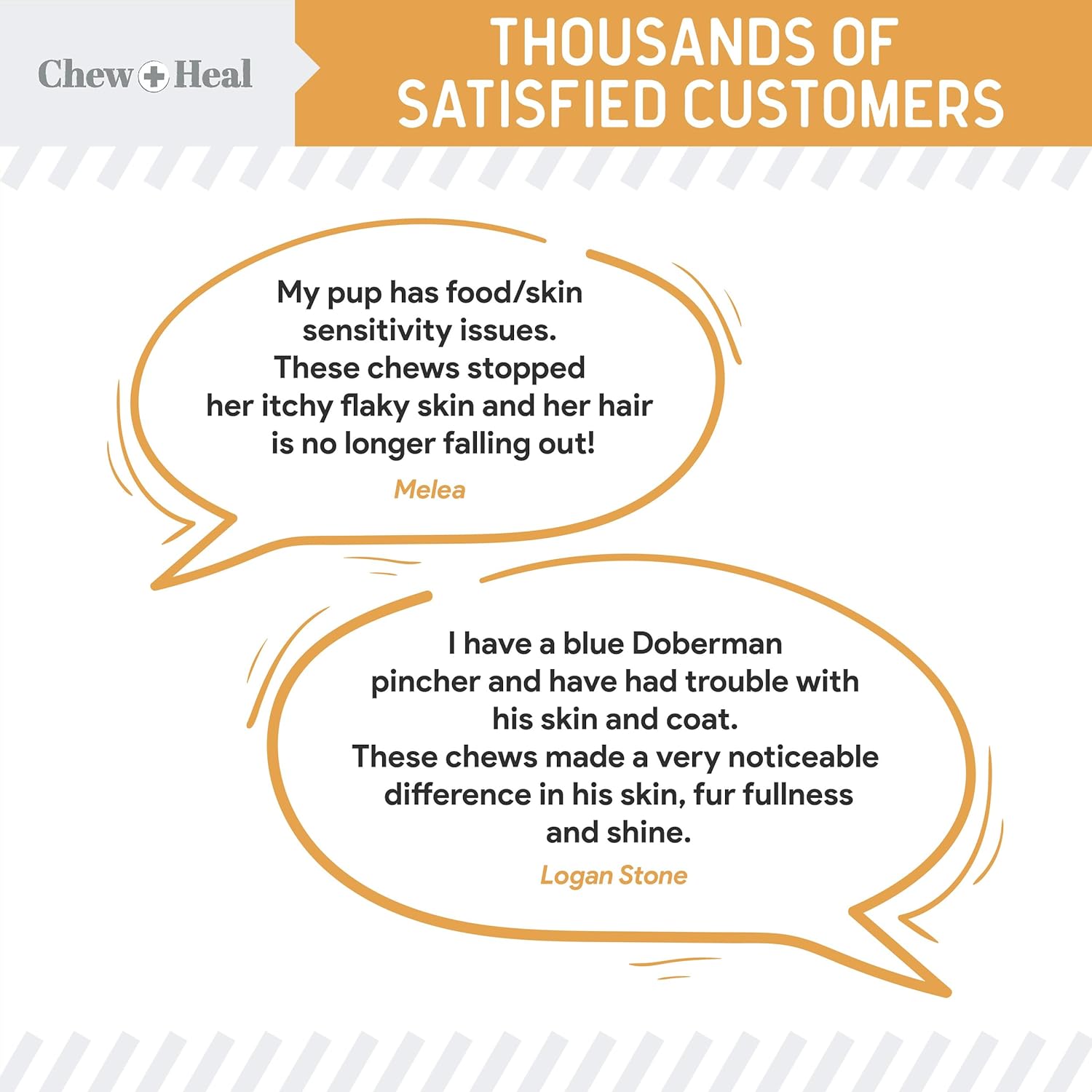 - PREVENTS SKIN ALLERGIES: This anti itch for dogs not only softens the skin, it gives it a glossy shine and helps prevent allergic reactions. This reduces dandruff and itchy skin, helping make your dog feel more comfortable in addition to being healthier! Say goodbye to greasy or dirty coats that have a unpleasant oily smell. These dog bites help kick-start the bodyβs natural processes to improve fur health.