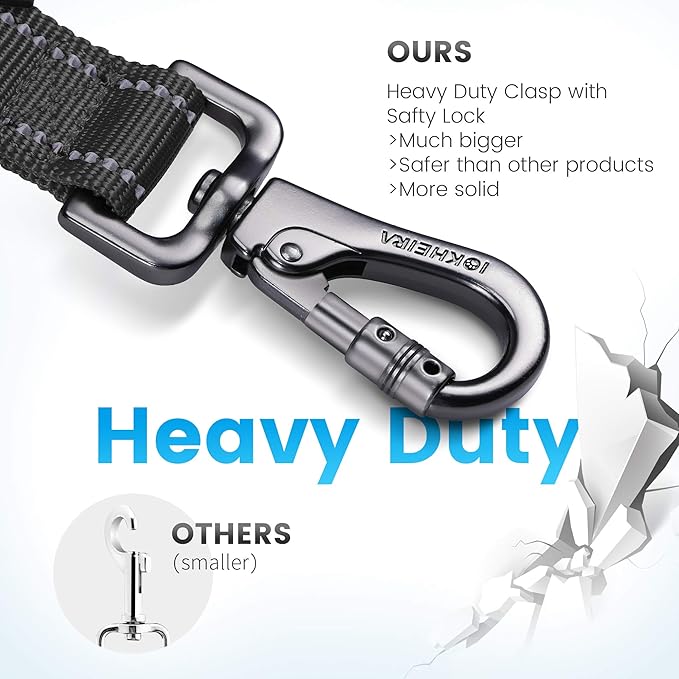 IOKHEIRA 6Ft /4Ft Dog Leash Rope for Large Dogs, Heavy Duty with Comfortable Padded Handle and Highly Reflective Threads,4-in-1 Multifunctional Dog Leashes with Car Seat Belt for Training (Black)