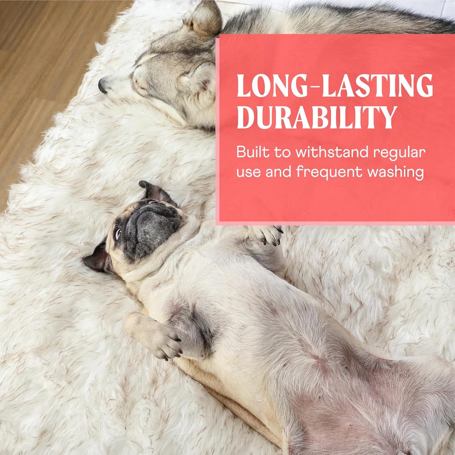PupProtector Waterproof Throw Blanket for Dogs and Cats, Pet Blanket Cover for Couches, Sofas, Beds, Car Seats, Furniture, Calming Soft Faux Fur, White with Brown Accents, Original (60" L x 50" W)