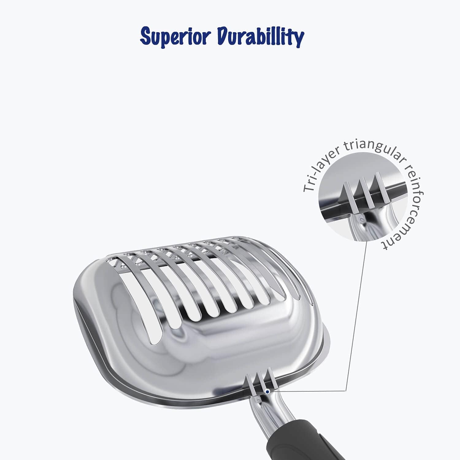 - [Features]: WePet made this scooper durable with heavy duty quality. After investigation with thousands thoughtful users, we finally make an improvement of removing the serrated edge as mentioned on reviews. The body is waterproof and very easy to clean, rust-resistant and corrosion resistant. Itβs highly recommended by cat lovers for everyday use.