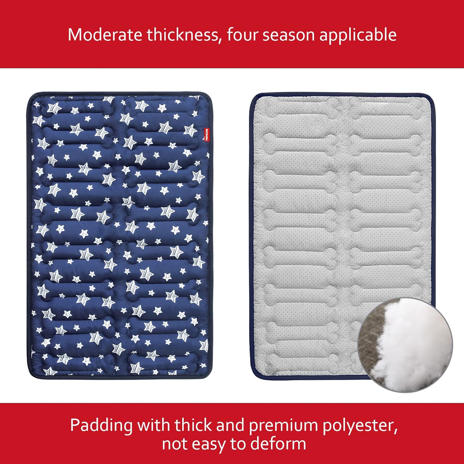 Dog Crate Mat (30" X 19"), Soft Dog Bed Mat with Cute Prints, Personalized Crate Pad, Anti-Slip Bottom, Machine Washable Kennel Pad, Navy