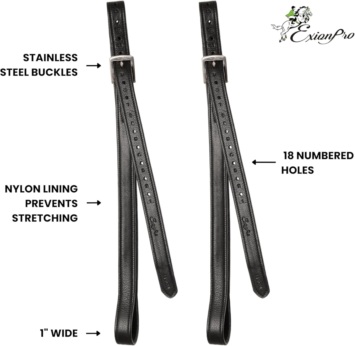Exion FlexiStrong Stirrup Leathers for English Saddles – 1" Premium Calfskin with Nylon Core – Numbered Holes, Stainless Steel Buckles – Black/Brown – Horse Riding Gear (48"/120cm to 62"/155cm)