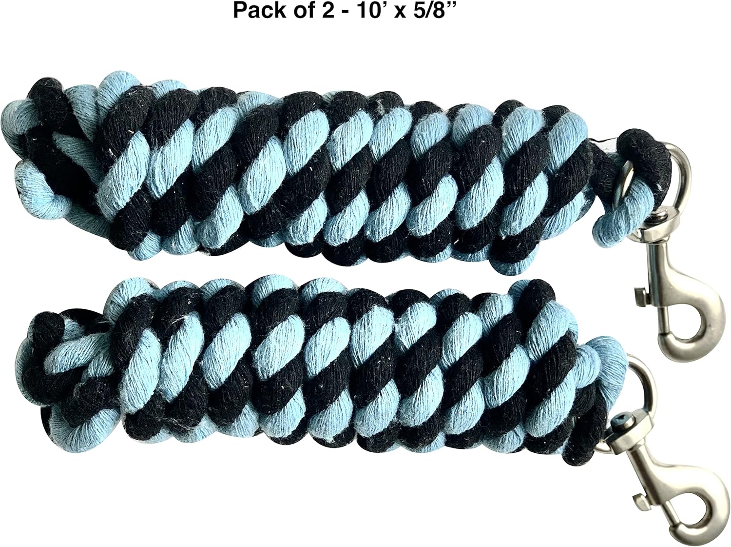 - TWIN PACK & AVAILABLE IN MULTIPLE COLORS - Our 10 feet cotton lead rope comes in pack of 2 and are available in 4 combo colors: Turquoise -Brown, Sky Blue – Black, Hunter Green -Tan and Navy - Burgundy.