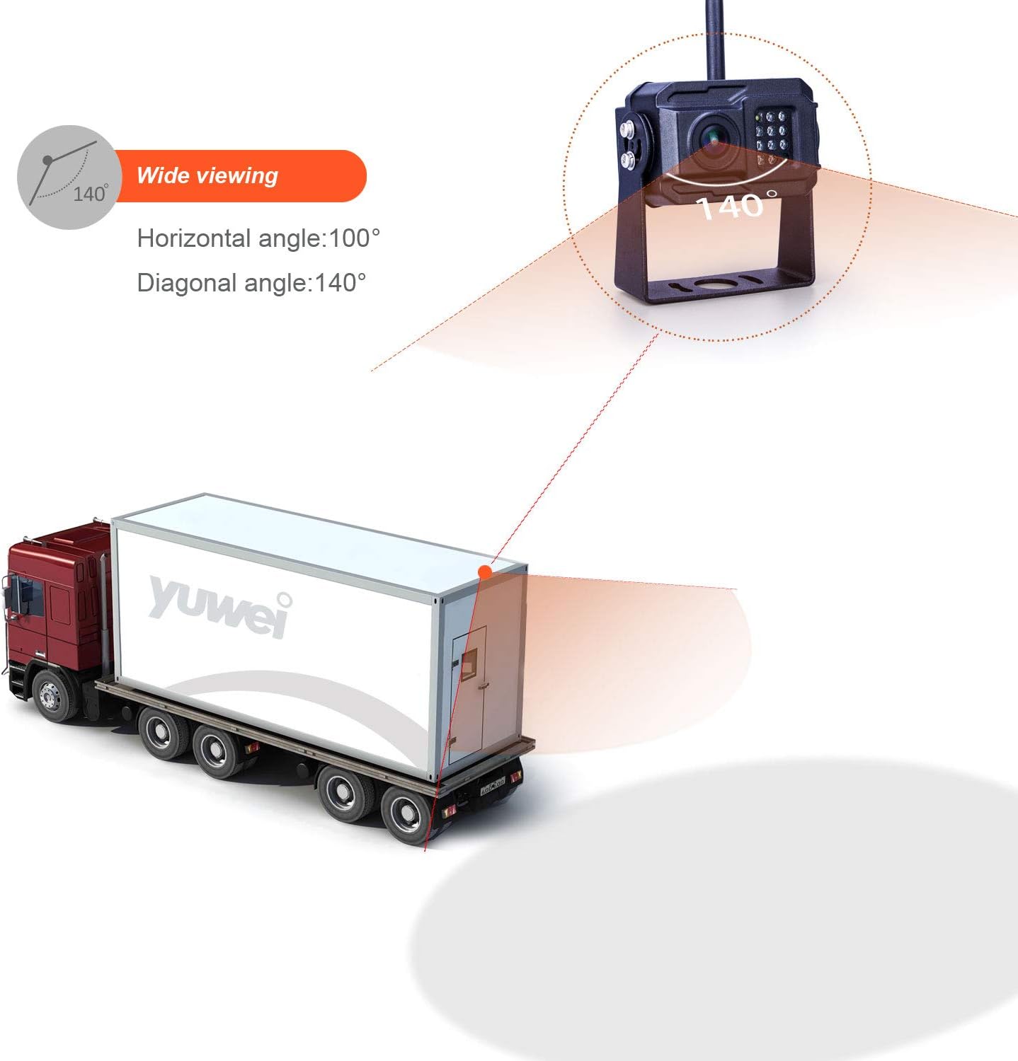 - Better & clear image quality Full HD 720P wireless rear view camera, it is IP69k waterproof with infrared clear night vision looks further distance up to 10meters under low light environment and wide viewing angle of 140° covers whole blind spot, its rustless well-constructed housing and bracket are enable cameras withstand harsh environment.