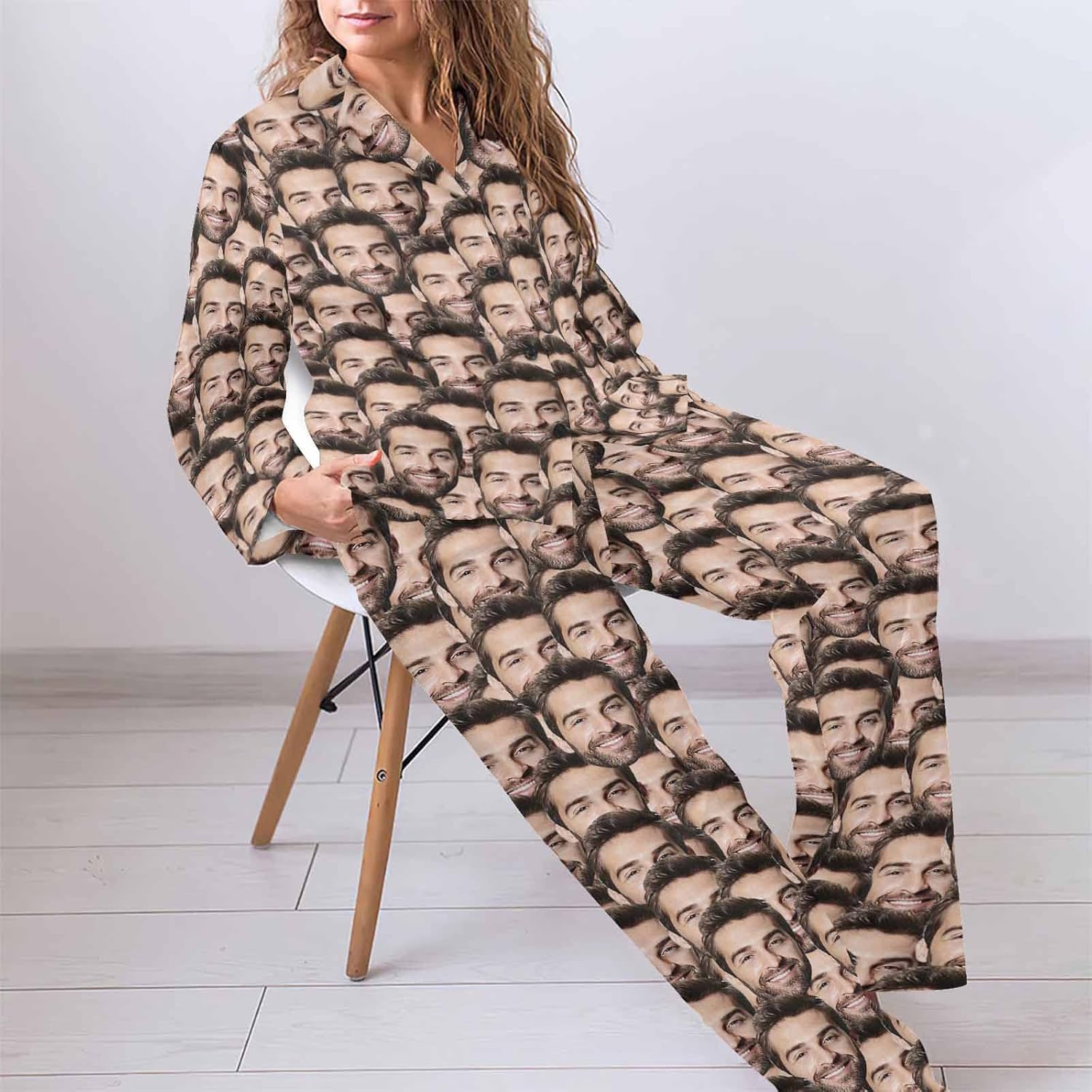 MyPupSocks Custom Face Pajamas for Women Set, Personalized Photo Long Sleepwear XS-XXL