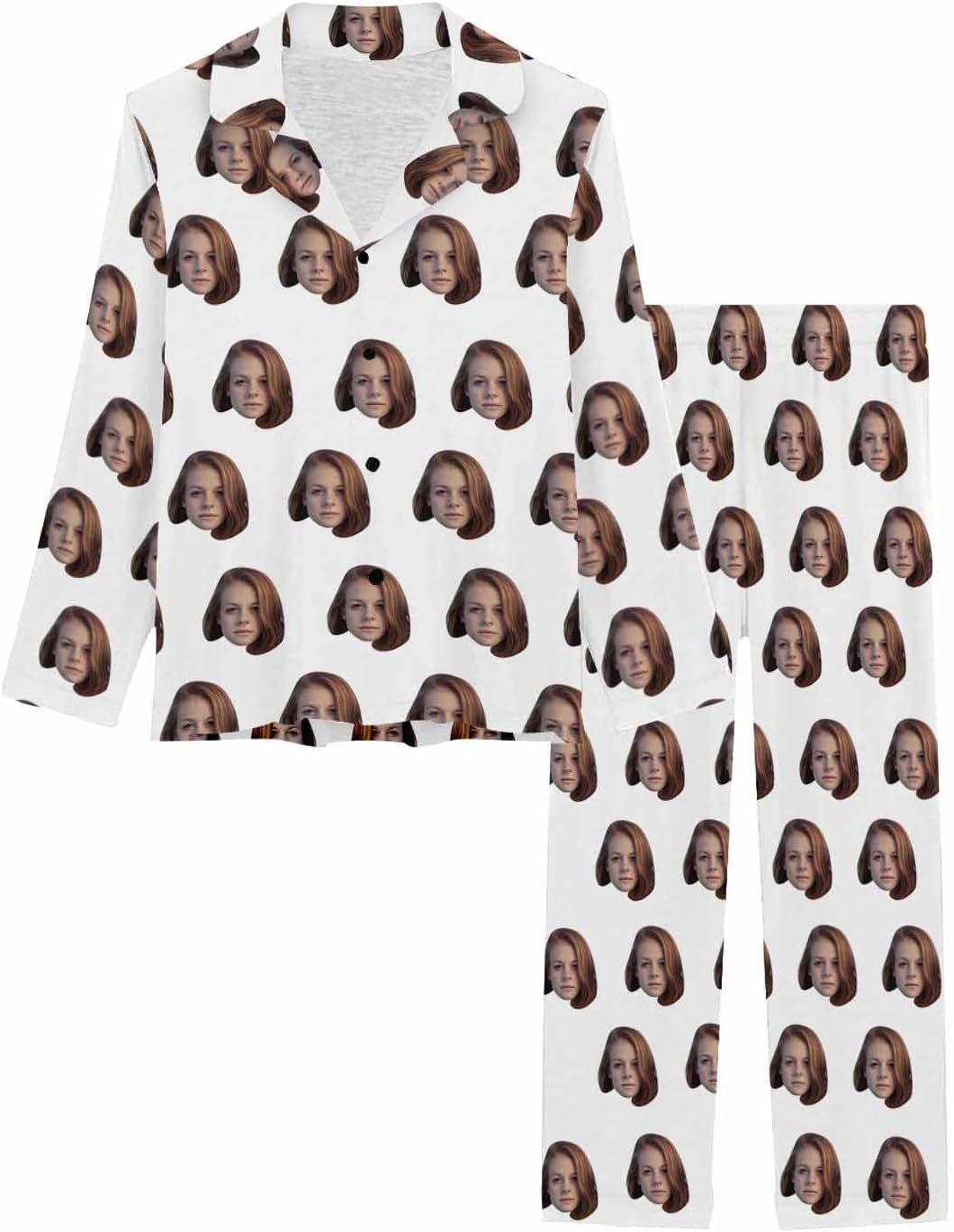 MyPupSocks Custom Face Pajamas for Women Set, Personalized Photo Long Sleepwear XS-XXL