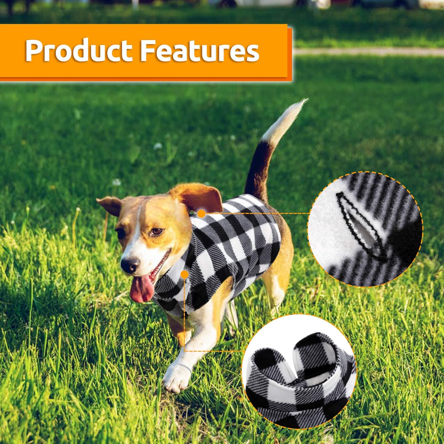 ASENKU Dog Sweater, Plaid Dogs Fleece Vest, Soft Comfortable Pet Pajamas, Warm Winter Puppy Shirt, Cold Weather Coat Jacket Pet Clothes for Small & Medium Dog Breeds (M, Black)
