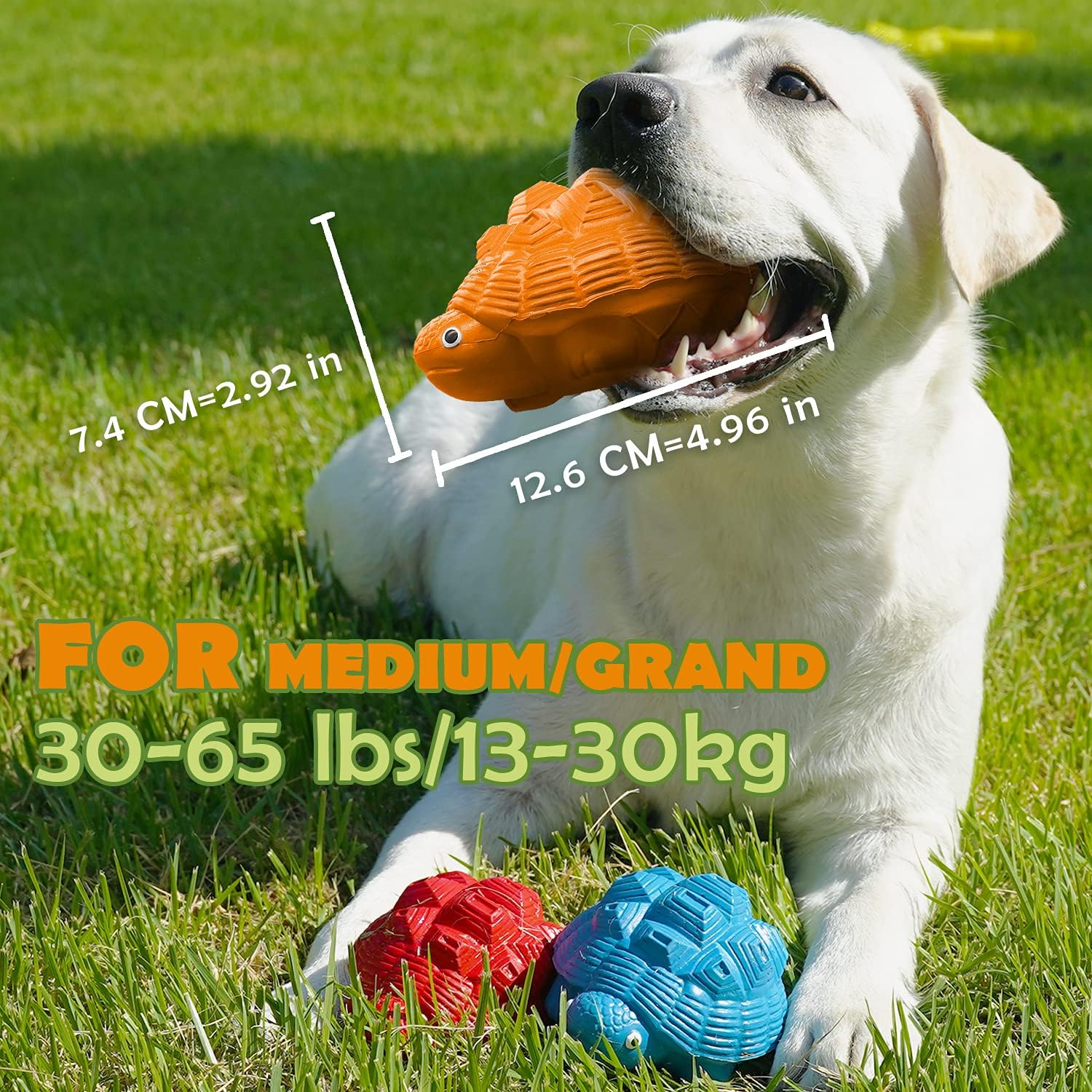 - 【ECO-FRIENDLY & PET HEALTH】Our natural rubber material is 100% eco-friendly and safe for pets, as it is BPA-free. The turtle's unique rubbery texture serves a dual purpose by massaging gums and cleaning teeth, providing oral care while pets play. The raised bumps on the toy help control tartar and plaque, while also offering a soothing texture for teething puppies, promoting their mental health and enhancing playtime pleasure.