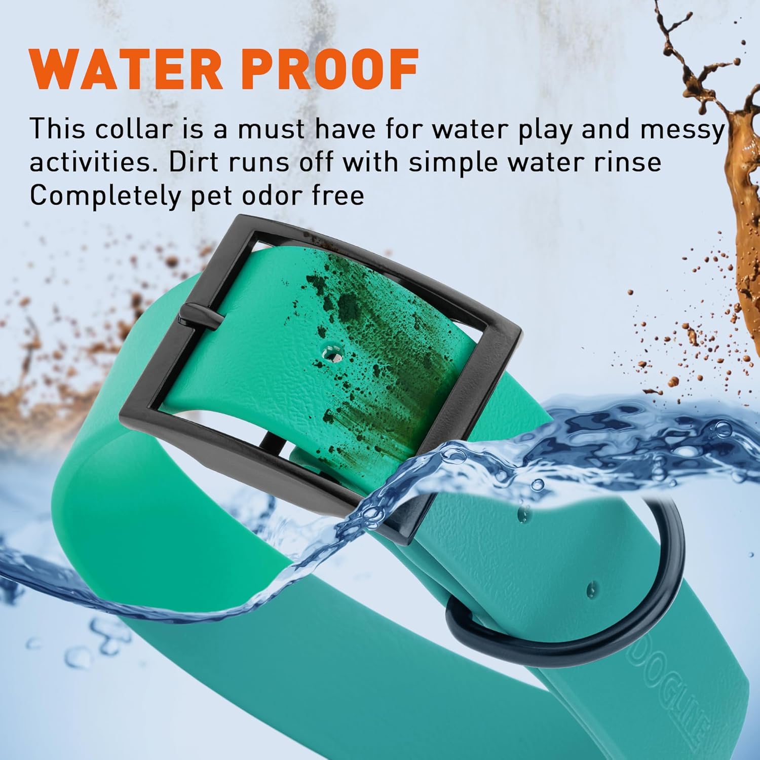 Dogline Biothane Waterproof Dog Collar Strong Coated Nylon Webbing with Black Hardware Odor- Proof for Easy Care Easy to Clean High Performance Fits Small Medium or Large Dogs, Teal