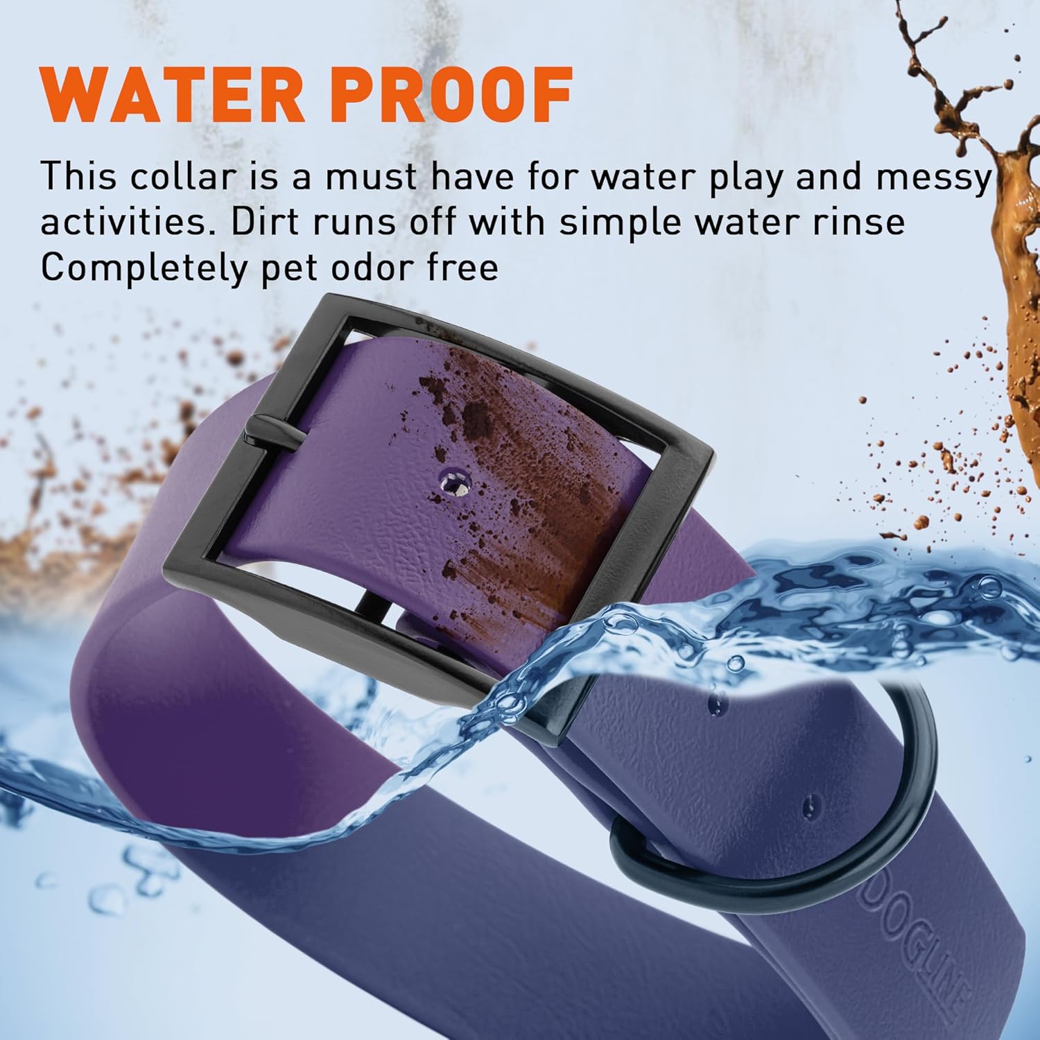 Dogline Biothane Waterproof Dog Collar Strong Coated Nylon Webbing with Black Hardware Odor- Proof for Easy Care Easy to Clean High Performance Fits Small Medium or Large Dogs, Violet Purple