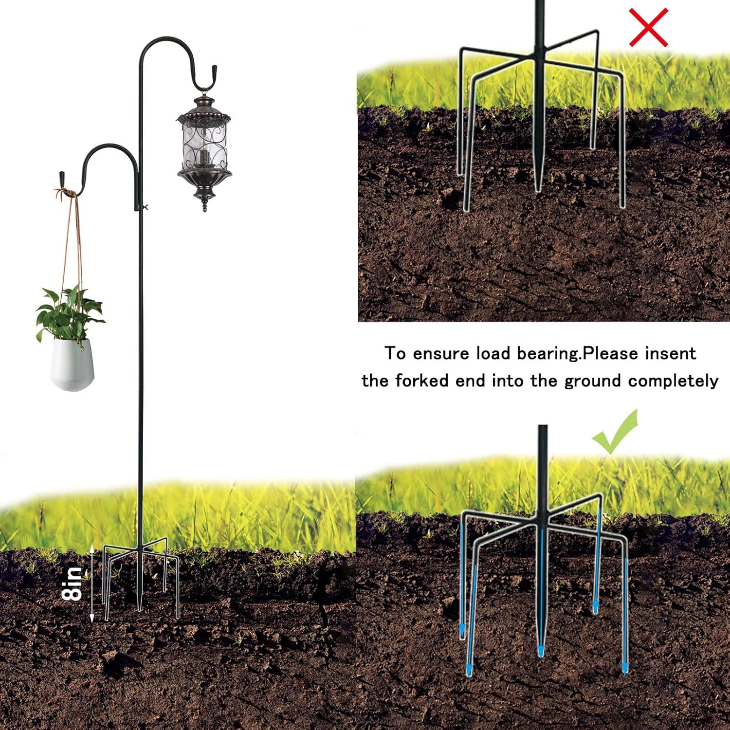 - 【5 PRONGED DESIGN】The base of the shepherd hooks outdoor is constructed with two double-forked based prongs and an extra long one. The 5 base prongs provide better stability to the shepherd hooks,much better than 2 or 3 prongs,It will be more stable.so you can easily install it into the ground to elevate the look of your garden and outdoor space.