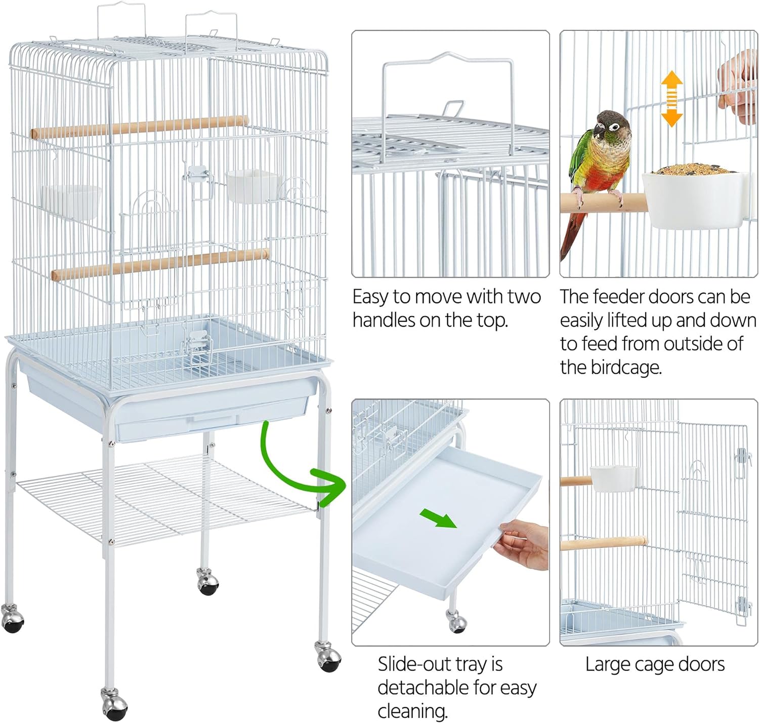 - Make Cleaning a Breeze: To ensure good user experience for pet parents as well, this cage has slide-out tray for collecting bird droppings and easy cleaning