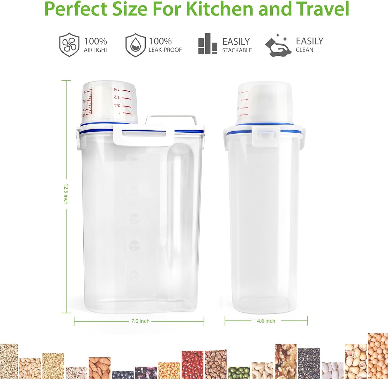 Rice Storage Container, 3 to 5Lbs Dry Food Airtight Container, Pet Dog Cat Food Canister, BPA Free Clear Plastic Kitchen and Pantry Organization Bin for Oatmeal, Grain, Cereal, Pasta, Flour