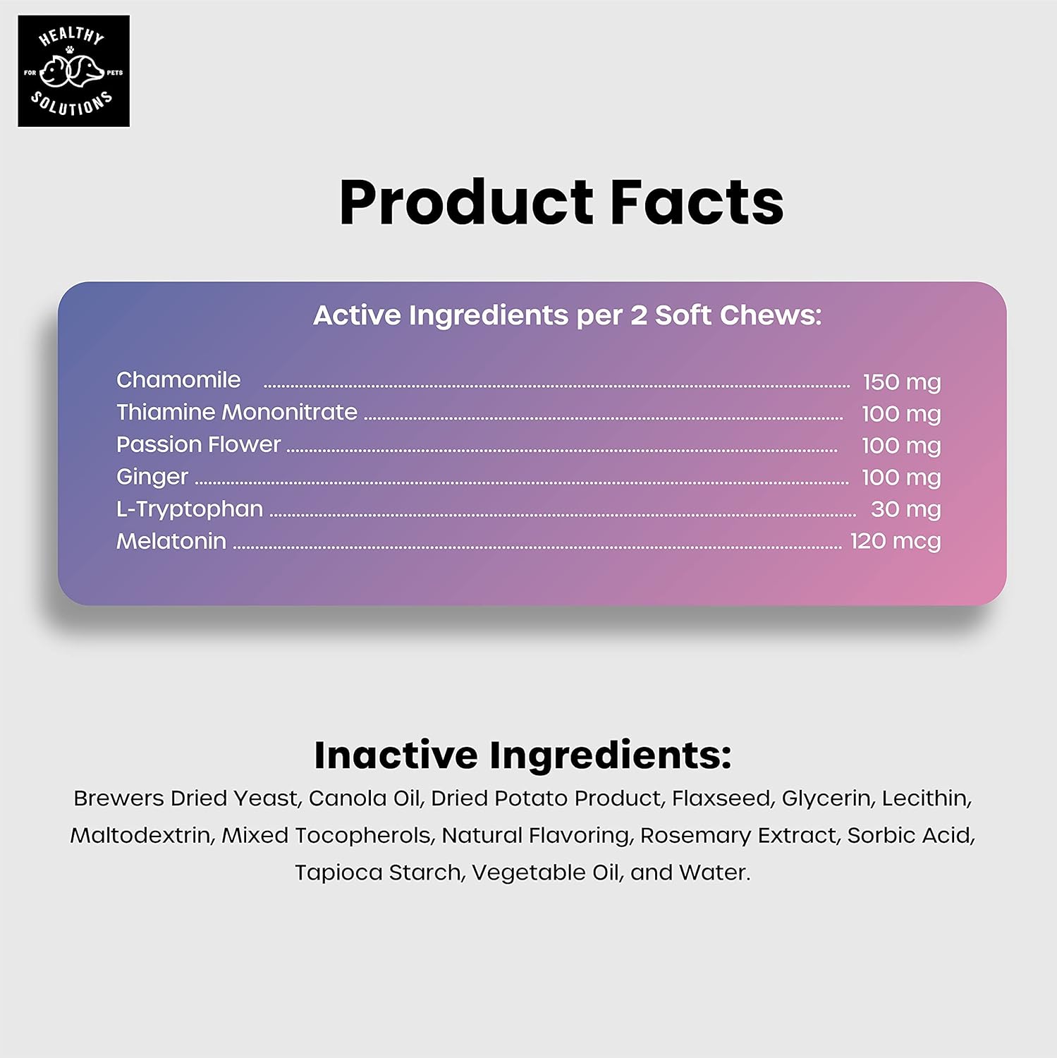 - ๐ธ VETERINARIAN FORMULATED -- with Melatonin, Chamomile, Passion Flower, Thiamine, L-Tryptophan, and Ginger to help soothe sensitive stomaches.