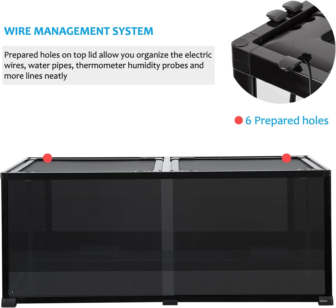 - γ270Β° Full View Glass TankγThis 3 sides glass of the 64 gallon reptile tank is transparent, allows you to watch and interact with your pets easily.