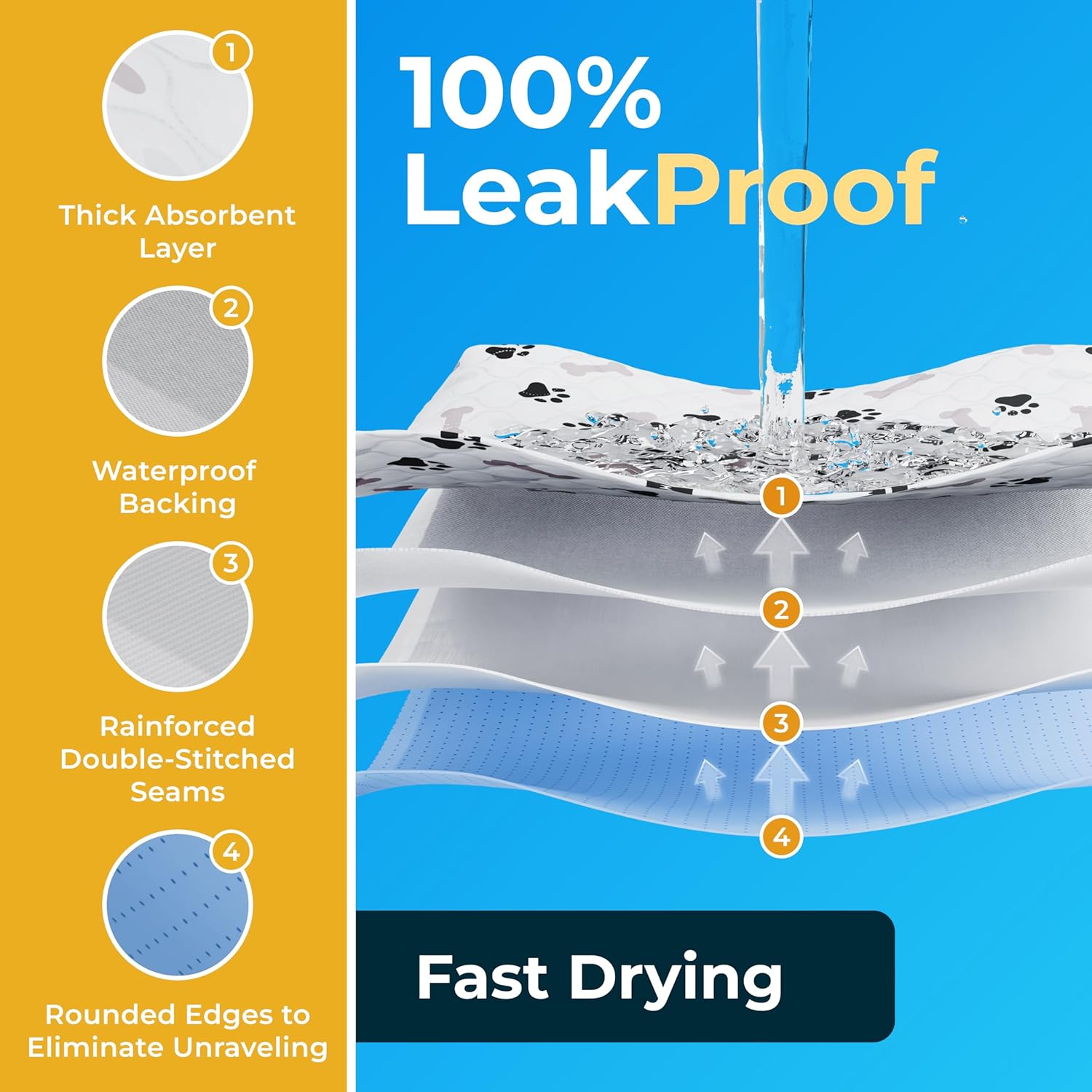 GREEN LIFESTYLE Washable Pee Pads for Dogs - Waterproof Reusable Puppy Pads with Anti-Slip Backing, Pet Training Pad for Puppy Playpen, Crate, Whelping Box, Potty Training (Pack of 4 - 30x34)