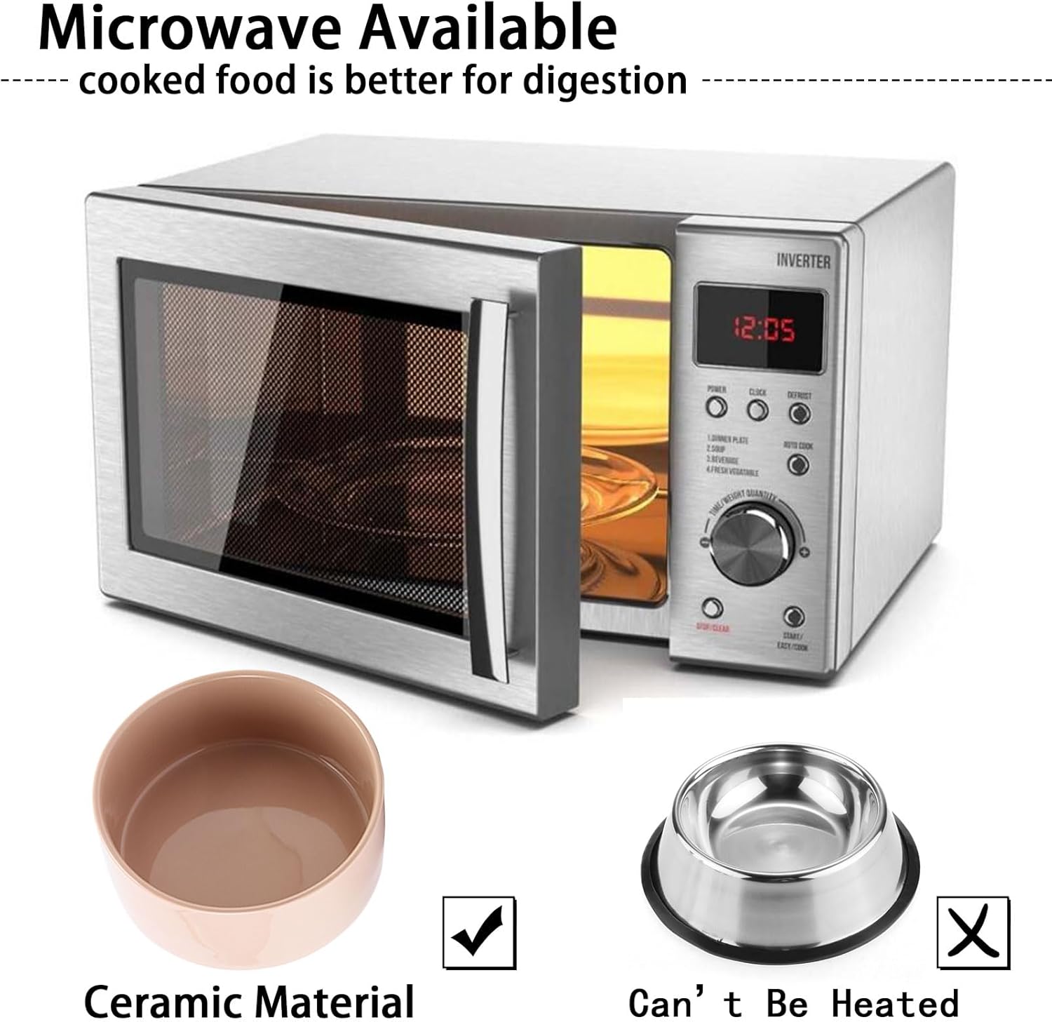 - Easy to Clean and Microwave Safe Ceramic Material - Cute dogs cats bowl with WOOD STAND design matches the home decorations. Ceramic bowl is made of Porcelain, this cat dog food water bowls are free of lead and cadmium. High temperature ceramic, no smell,durable.conveniently dishwasher Microwave safe so this ceramic food bowl can be easily cleaned. No Fuss.