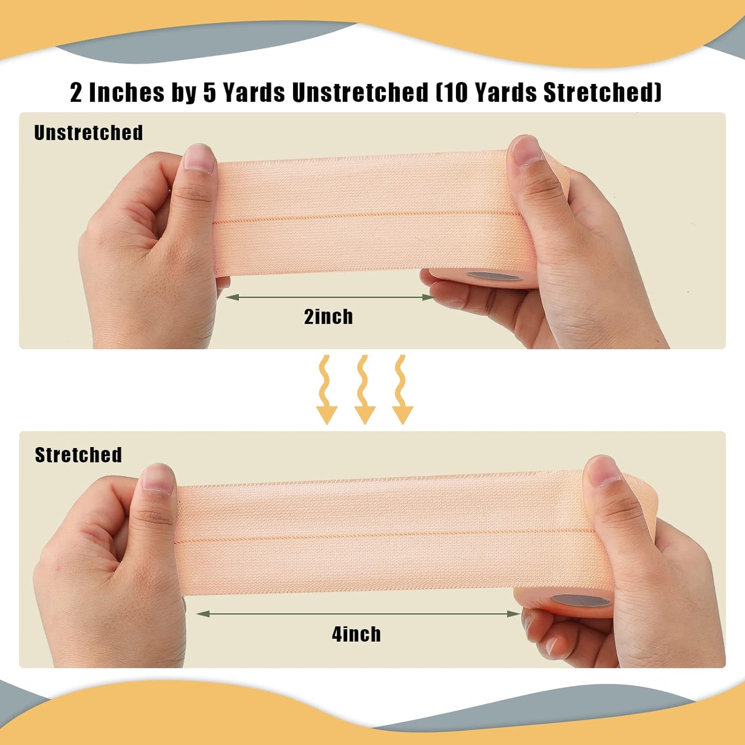 - You will get: there are 4 rolls of elastic tape, about 2 inch in width and 5 yard in length in total, which can be stretched to 10 yards in length, and can be applied according to your actual needs, long enough to meet your multiple needs
