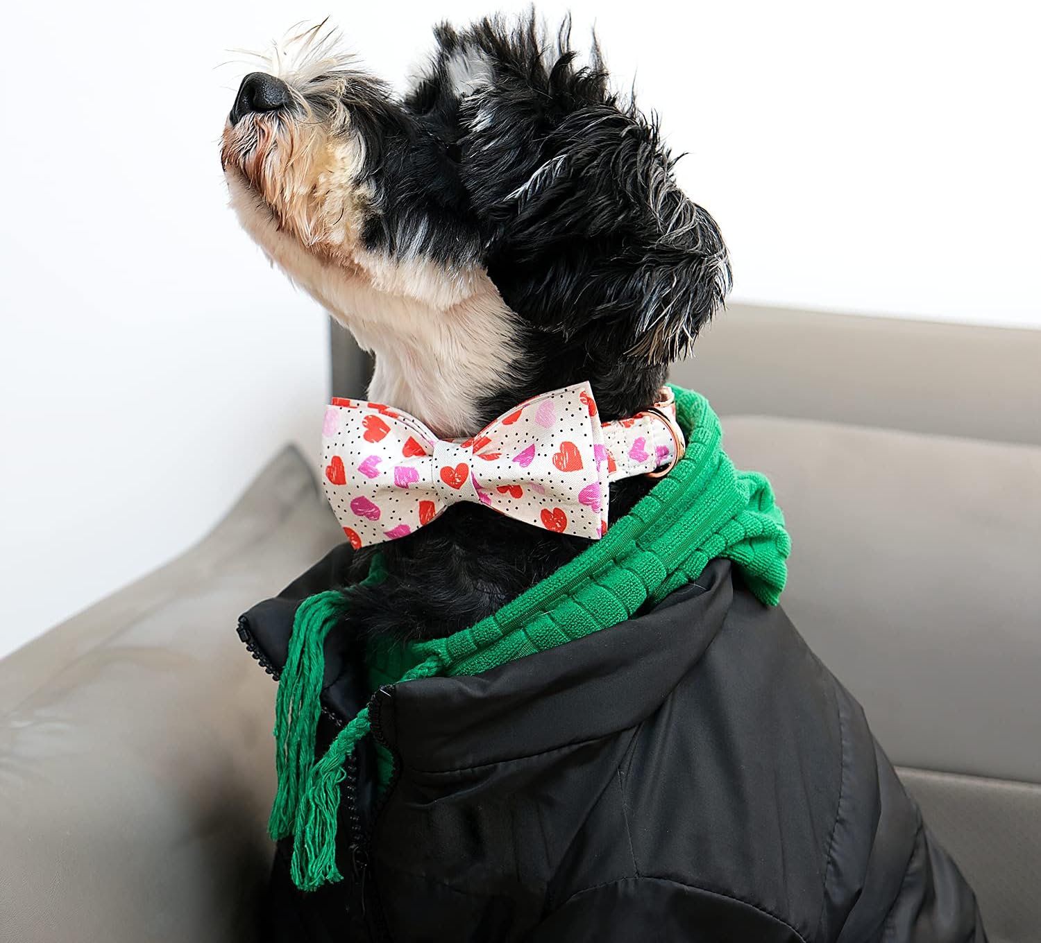 Lionet Paws Valentines Day Dog Collar with Bowtie, Dog Bowtie Collar with Metal Buckle for Dogs, Adjustable Comfortable Dog Collar Girl Boy Gift, L, Neck 16-24 in
